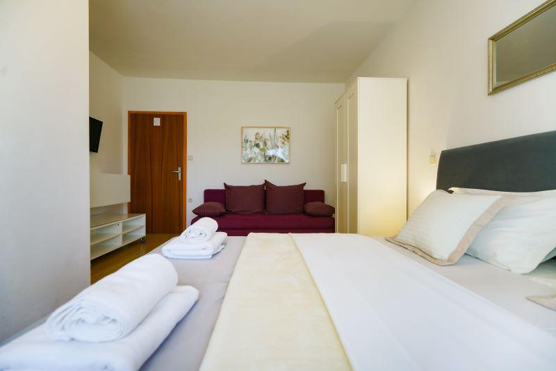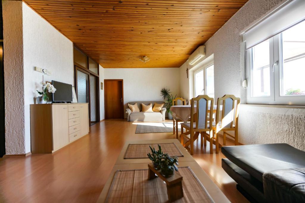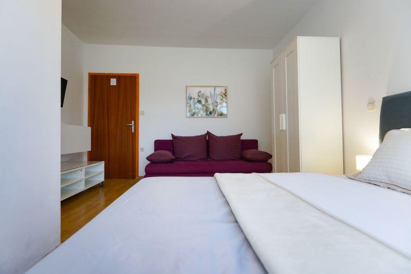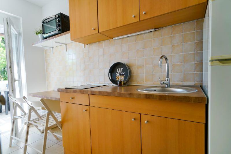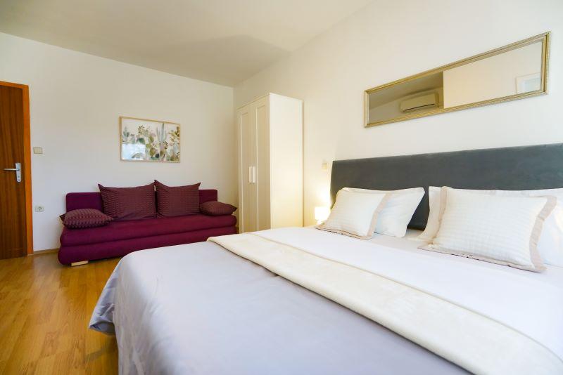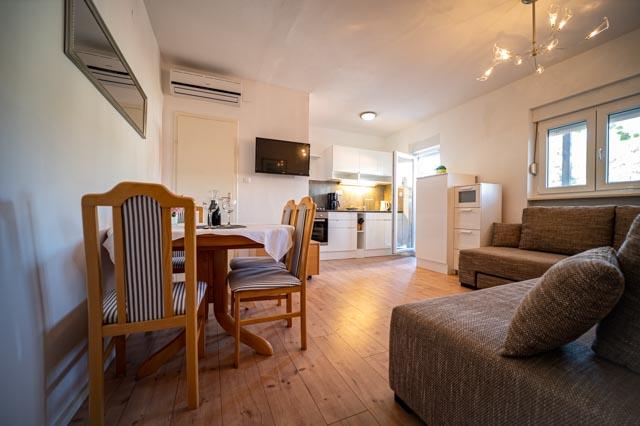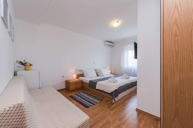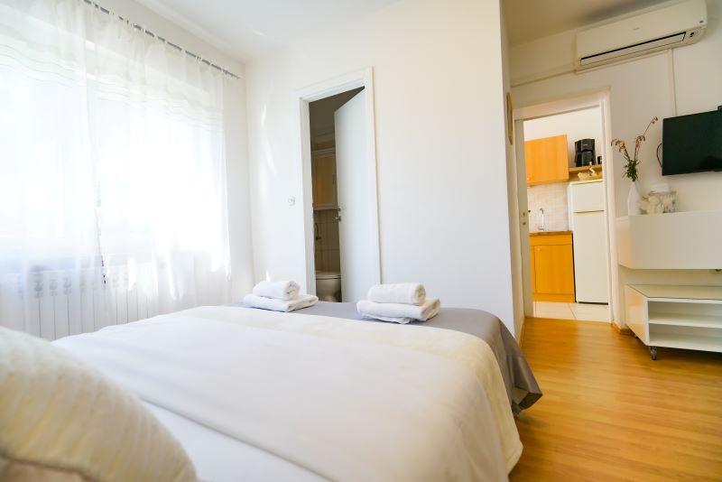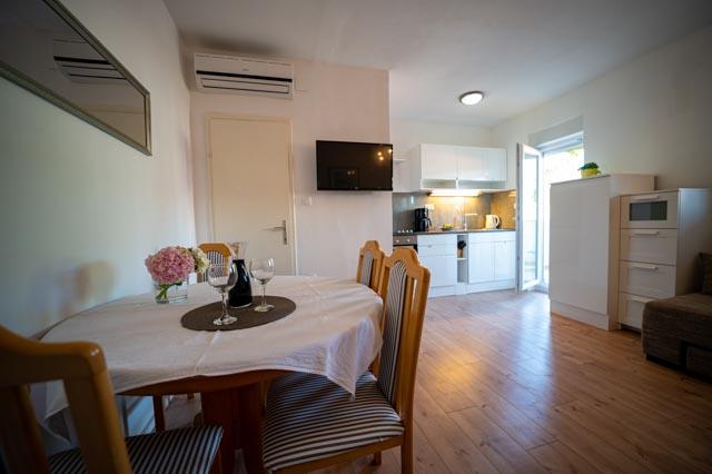 À seulement 30 mètres de la plage récemment rénovée de Mala Makarska ! Les appartements et chambres Ero sont situés à Sukošan, à seulement quelques mètres de la plage, et offrent à leurs clients la possibilité de passer des vacances en famille paisibles. L'établissement dispose de 7 unités d'hébergement. Nous vous proposons 4 appartements, un studio et deux chambres. Chaque appartement dispose d'une terrasse avec vue sur la mer ou le jardin. Les appartements disposent d'une cuisine entièrement fonctionnelle, d'une télévision par satellite LCD, de la climatisation, de toilettes et de grands lits doubles. Les clients séjournant dans les chambres peuvent utiliser la cuisine extérieure commune. Un parking et une connexion Internet WI-FI sont disponibles pour chaque appartement ou chambre. Dans la cour, il y a également une cuisine d'été avec barbecue, qui est à la disposition de tous les hôtes. A proximité de l'appartement il y a des commerces, restaurants, bars de plage, aires de jeux pour enfants, fast food...