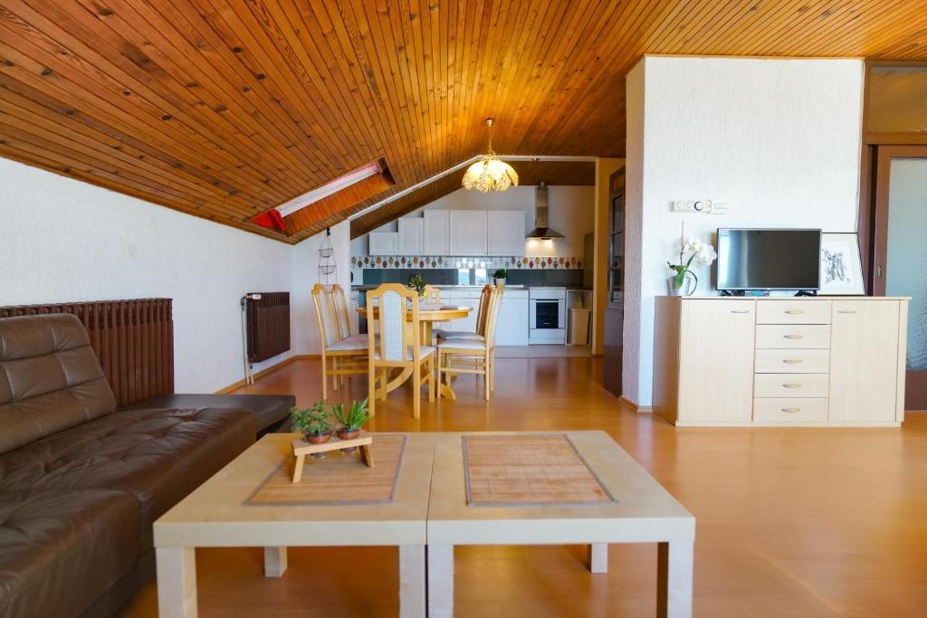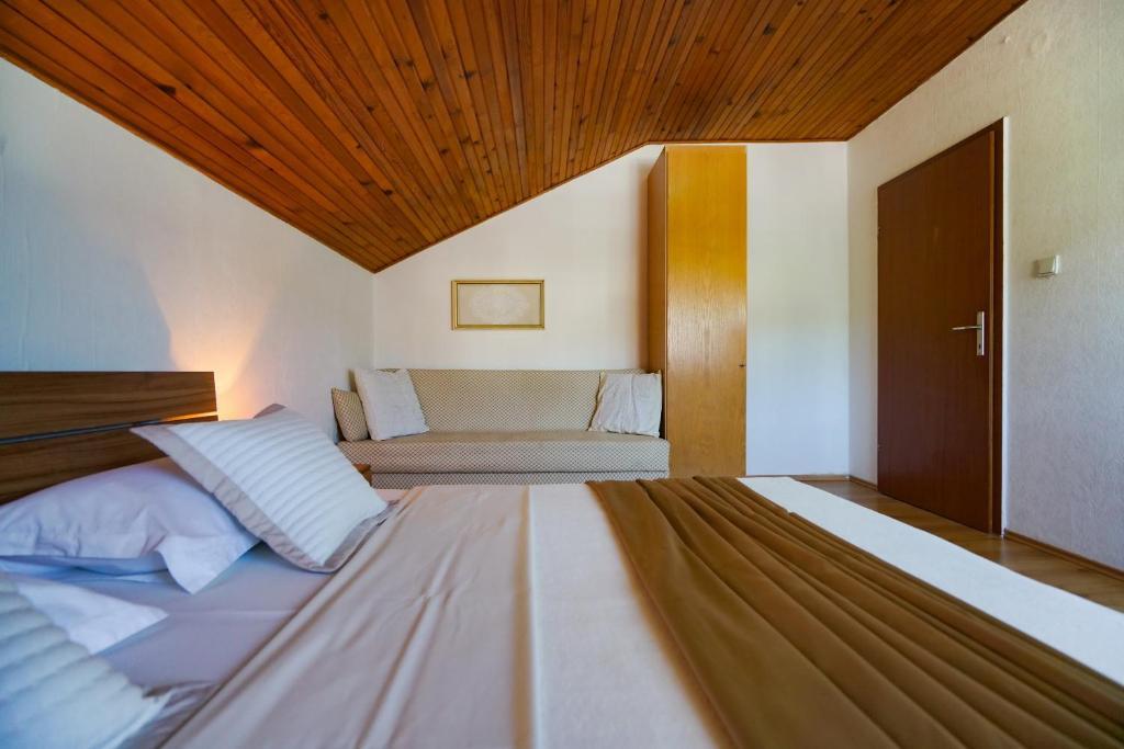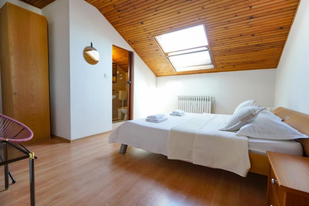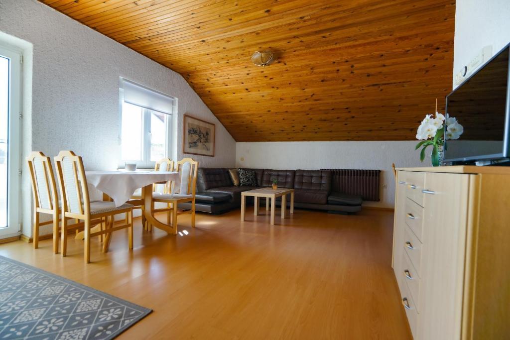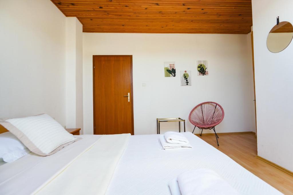 À seulement 30 mètres de la plage récemment rénovée de Mala Makarska ! Les appartements et chambres Ero sont situés à Sukošan, à seulement quelques mètres de la plage, et offrent à leurs clients la possibilité de passer des vacances en famille paisibles. L'établissement dispose de 7 unités d'hébergement. Nous vous proposons 4 appartements, un studio et deux chambres. Chaque appartement dispose d'une terrasse avec vue sur la mer ou le jardin. Les appartements disposent d'une cuisine entièrement fonctionnelle, d'une télévision par satellite LCD, de la climatisation, de toilettes et de grands lits doubles. Les clients séjournant dans les chambres peuvent utiliser la cuisine extérieure commune. Un parking et une connexion Internet WI-FI sont disponibles pour chaque appartement ou chambre. Dans la cour, il y a également une cuisine d'été avec barbecue, qui est à la disposition de tous les hôtes. A proximité de l'appartement il y a des commerces, restaurants, bars de plage, aires de jeux pour enfants, fast food...