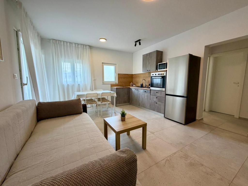 Appartements dans une maison neuve avec cuisine privée entièrement équipée, literie, salle de bain et terrasse. La mer est à moins de 50 m. Ambiance familiale. Jardin et environnement sécurisés pour les enfants. Parking et barbecue. À 50 m de la mer, à 10 min à pied du centre-ville et à 15 min en voiture de Zadar. Idéal pour des vacances reposantes : lecture, musique, détente, contact avec la nature et bien-être. Plusieurs plages se trouvent à proximité (galets, béton, et une plage de sable en plein centre-ville). Sukošan est un village portuaire situé dans une baie (le Port d'Or de Sukošan), à 11 km au sud-est de Zadar. Spacieux et paisible, Sukošan offre un long littoral, de nombreuses criques isolées et une mer limpide bordée d'îles s'étendant jusqu'au parc national des Kornati. Sukošan possède un grand port de plaisance, le complexe naturel de Tustica, des plages de sable fin, de beaux bâtiments, des oliveraies et des vignobles, et bien d'autres traditions…