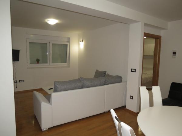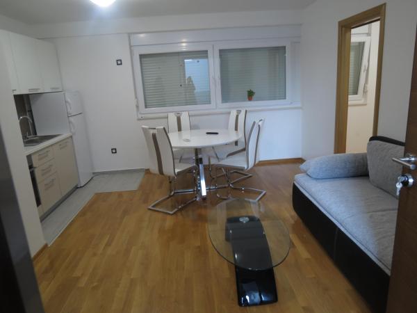 Les appartements modernes sont situés dans un quartier calme de Sukošan. La plage est à 1 minute et le centre à 10 minutes à pied (environ 500 mètres). Un premier magasin est également à 10 minutes à pied. Chaque appartement est climatisé. Serviettes, papier toilette, bouilloire et vaisselle sont fournis. Un grand parking et une petite pelouse sont à votre disposition devant la maison. Un barbecue est à votre disposition dans la cour.