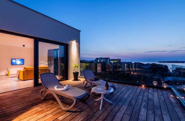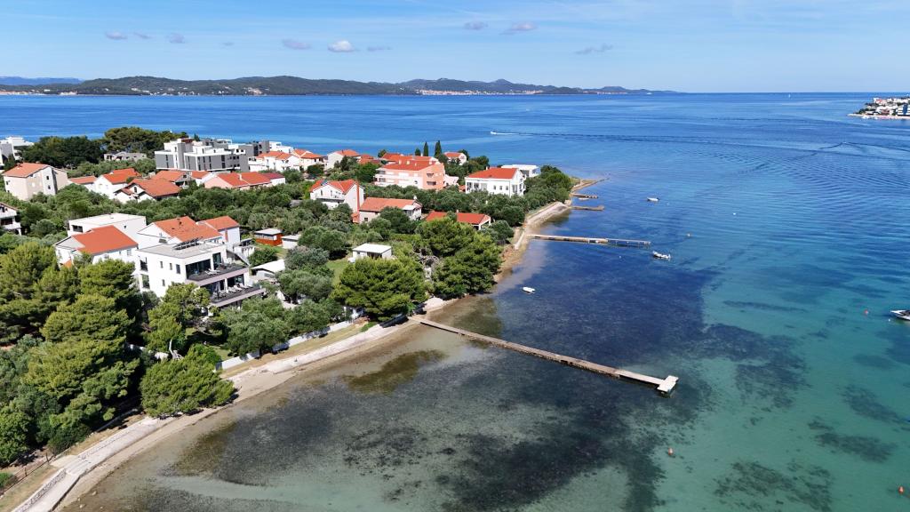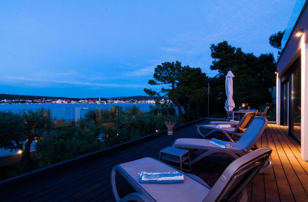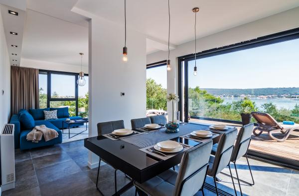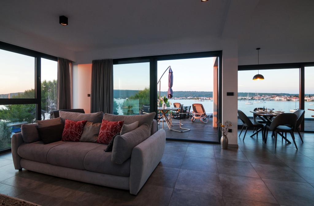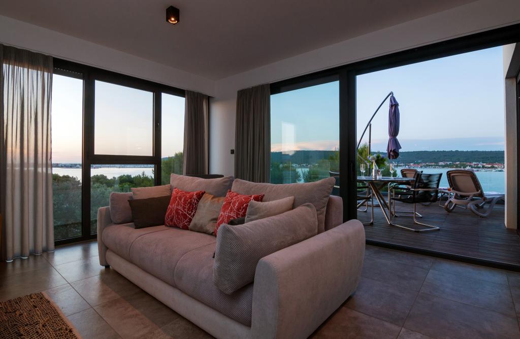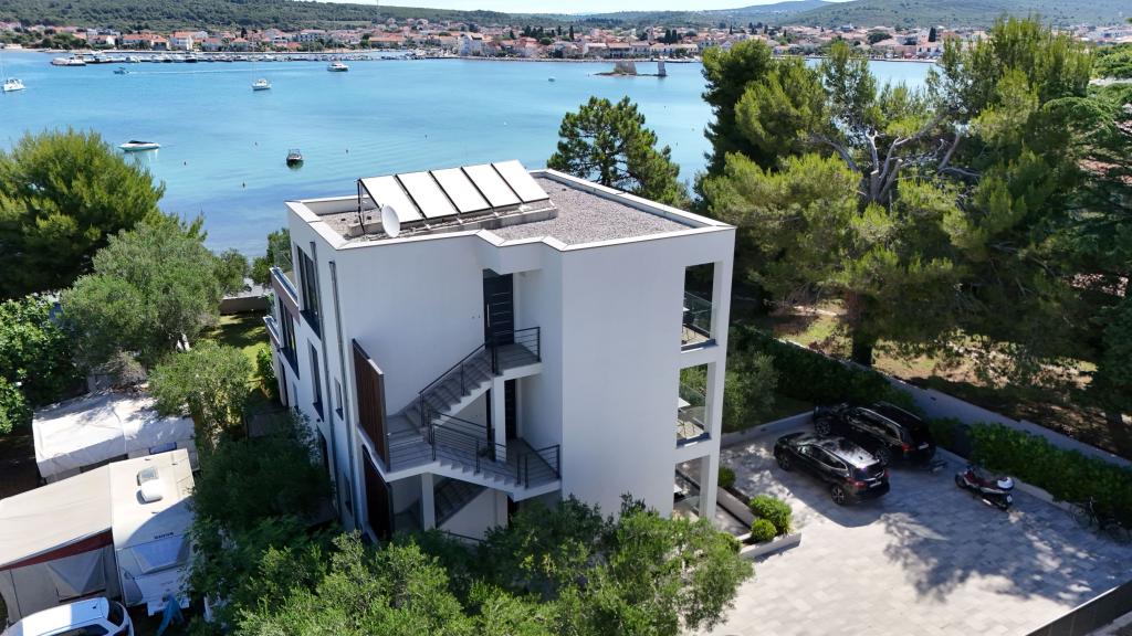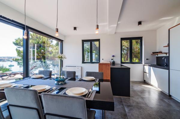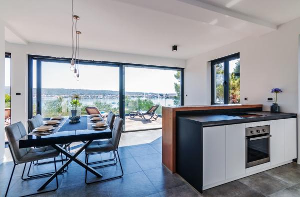 Vila Punta Aqua est luxueusement décoré dans un style moderne et fonctionnel, idéal pour profiter de l'ombre de l'olive et dans la mer avec un beau fond de sable. Il est à seulement quelques mètres de la plage. Il est divisé sur 3 étages. Au rez-de-chaussée il y a un appartement de trois pièces avec 3 salles de bains et un WC supplémentaire et une grande terrasse de 35m2. Au premier étage se trouve un appartement de deux chambres avec deux salles de bains et des toilettes supplémentaires. Le grand balcon de 37m2 est idéal pour se détendre et profiter de la belle vue sur la mer. Au deuxième étage se trouve un luxueux appartement d'une chambre avec une salle de bain et des toilettes supplémentaires. L'appartement dispose d'un magnifique balcon spacieux donnant sur la mer. Cette villa est idéale pour profiter, vacances et socialiser avec une vue magnifique sur la mer.