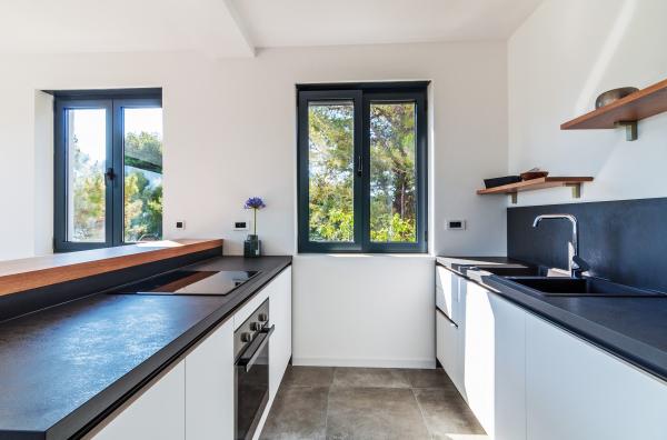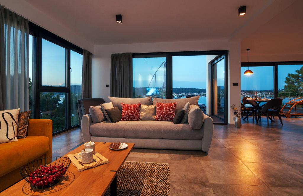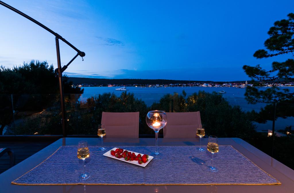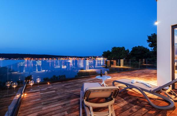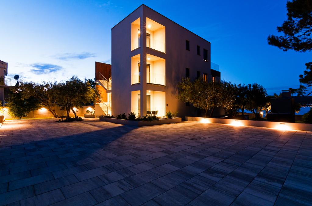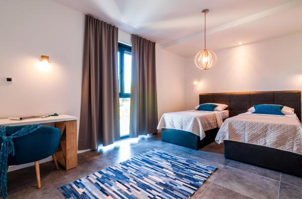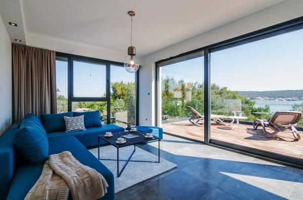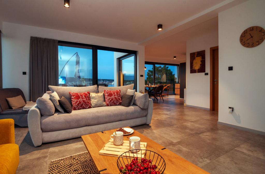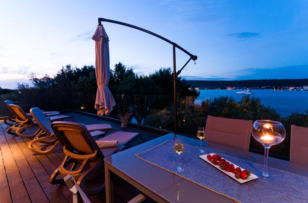 Vila Punta Aqua est luxueusement décoré dans un style moderne et fonctionnel, idéal pour profiter de l'ombre de l'olive et dans la mer avec un beau fond de sable. Il est à seulement quelques mètres de la plage. Il est divisé sur 3 étages. Au rez-de-chaussée il y a un appartement de trois pièces avec 3 salles de bains et un WC supplémentaire et une grande terrasse de 35m2. Au premier étage se trouve un appartement de deux chambres avec deux salles de bains et des toilettes supplémentaires. Le grand balcon de 37m2 est idéal pour se détendre et profiter de la belle vue sur la mer. Au deuxième étage se trouve un luxueux appartement d'une chambre avec une salle de bain et des toilettes supplémentaires. L'appartement dispose d'un magnifique balcon spacieux donnant sur la mer. Cette villa est idéale pour profiter, vacances et socialiser avec une vue magnifique sur la mer.