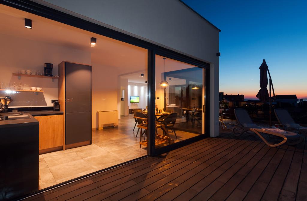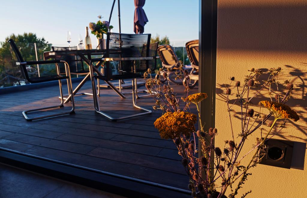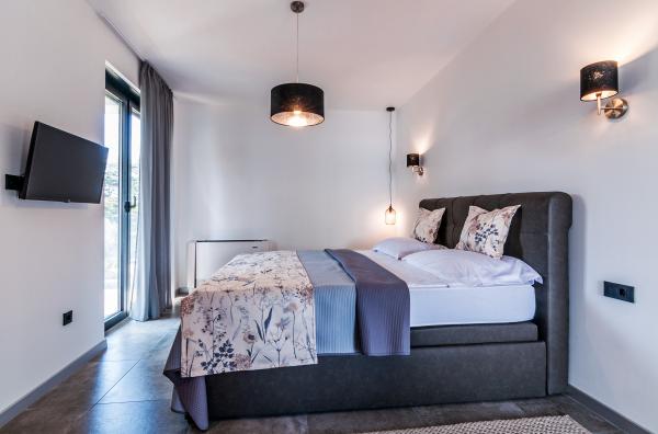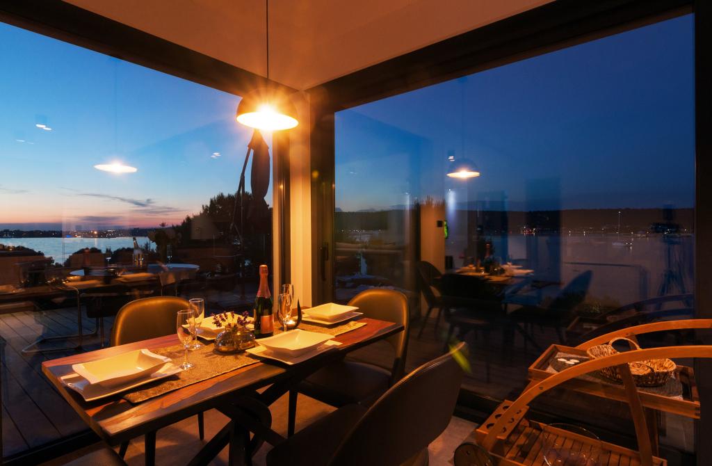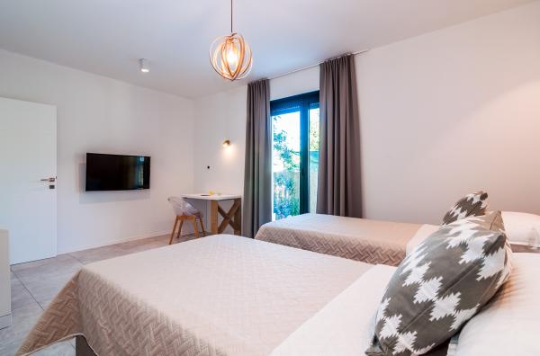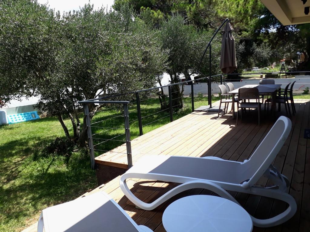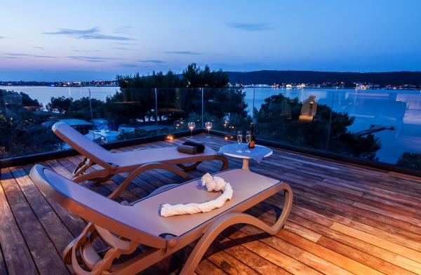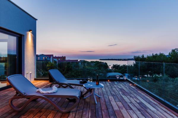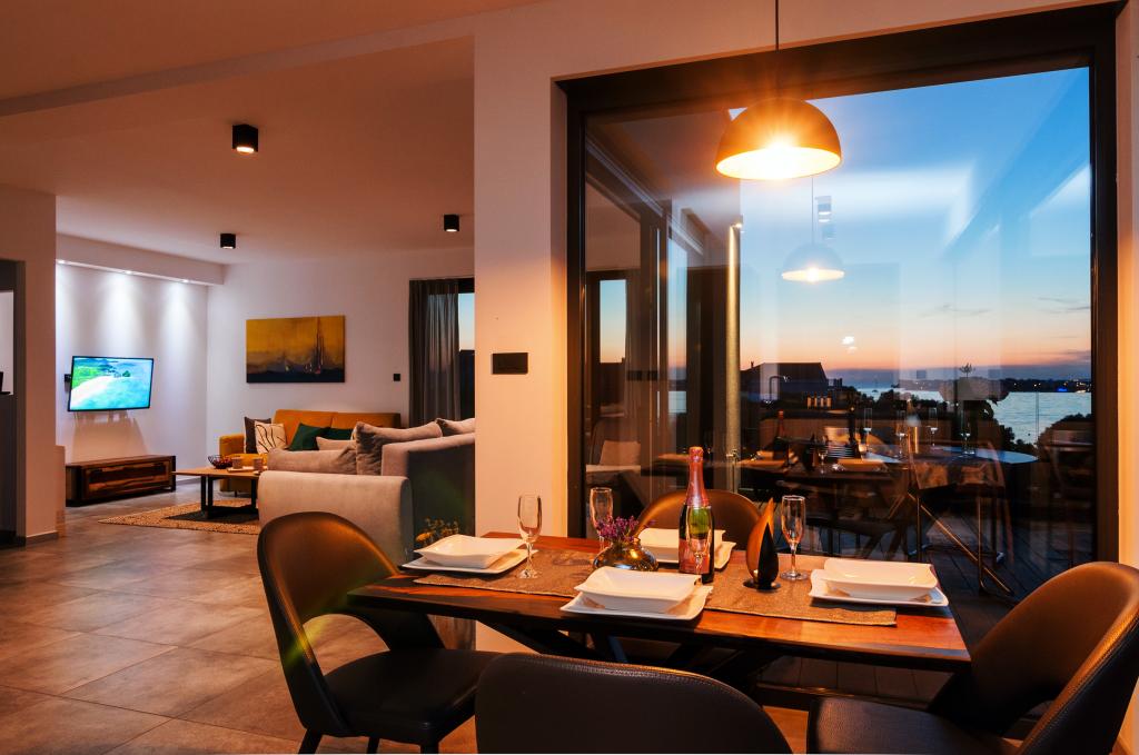 Vila Punta Aqua est luxueusement décoré dans un style moderne et fonctionnel, idéal pour profiter de l'ombre de l'olive et dans la mer avec un beau fond de sable. Il est à seulement quelques mètres de la plage. Il est divisé sur 3 étages. Au rez-de-chaussée il y a un appartement de trois pièces avec 3 salles de bains et un WC supplémentaire et une grande terrasse de 35m2. Au premier étage se trouve un appartement de deux chambres avec deux salles de bains et des toilettes supplémentaires. Le grand balcon de 37m2 est idéal pour se détendre et profiter de la belle vue sur la mer. Au deuxième étage se trouve un luxueux appartement d'une chambre avec une salle de bain et des toilettes supplémentaires. L'appartement dispose d'un magnifique balcon spacieux donnant sur la mer. Cette villa est idéale pour profiter, vacances et socialiser avec une vue magnifique sur la mer.