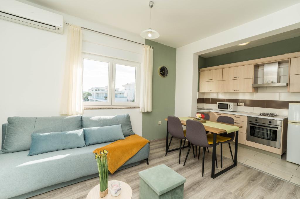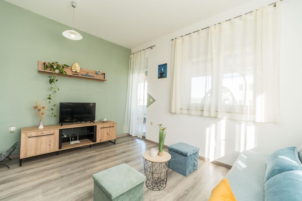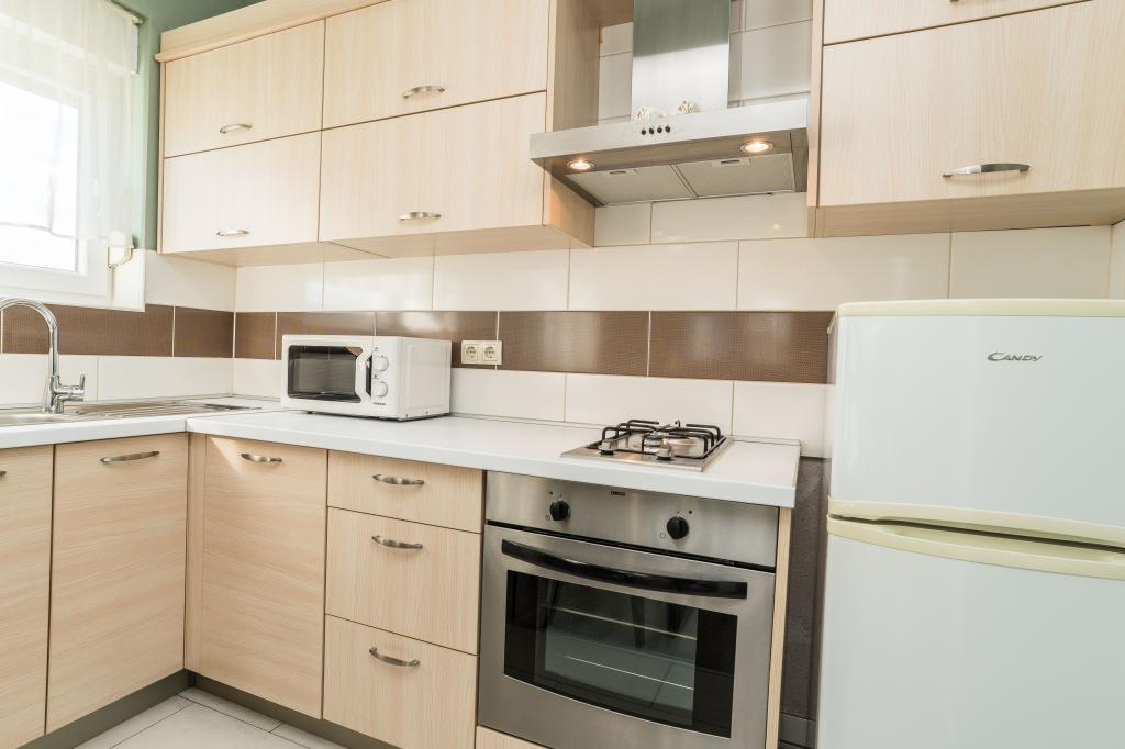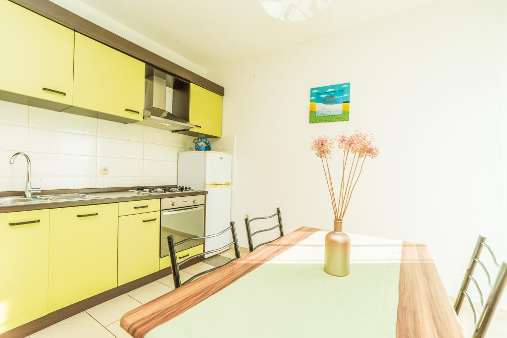 Entièrement équipé, jusque dans les moindres détails. Terrasse spacieuse, vue mer, plage à côté de l'appartement, verdure autour de la maison, place de parking sécurisée. Les hôtes à souhait, chaleureux, cordiaux, vous font vous sentir comme chez vous, vous surprennent avec dîner, fruits, légumes et huile d'olive maison... Nous prévoyons d'y retourner !