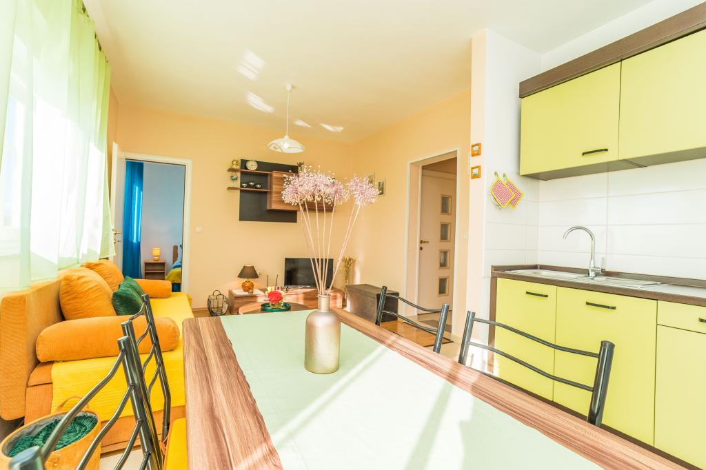 Nous avons passé 10 beaux jours avec toi, Franić, qui semblent trop courts au regard de quelques jours après notre retour. Les deux appartements (car le second a été loué par nos amis avec qui nous avons voyagé) correspondaient pleinement à nos attentes et à nos besoins. Les terrasses sur plusieurs côtés de l'appartement sont une très bonne solution quand on veut déjouer le soleil brûlant. Depuis les appartements très proches des plages 50-100 m (selon l'endroit choisi sur la plage), vous pourrez même regarder les enfants jouer sur la plage depuis la terrasse. Vues sur la mer, les îles et la gamme Velebit du côté opposé. Proche du marché, boulangerie, stand de fruits et légumes, restaurant - à environ 200 m, et ils sont situés les uns à côté des autres. Le quartier et la plage sont calmes et paisibles. Détente totale garantie. A proximité des pistes de ski de fond et des pistes cyclables. J'ai personnellement choisi l'itinéraire Trip Stanza de 5,2 km. Pour ceux qui ne sont pas satisfaits de la natation, de la plongée en apnée, du jogging et des bains de soleil, nous recommandons des excursions et des visites non seulement de Sukosan mais aussi d'autres endroits. L'emplacement de Sukosan nous a permis de visiter Zadar et Šibenik. Nous étions également dans le parc national de Krka (cascades), au point de vue de Kamenjak, d'où l'on peut voir le lac Vrana et la mer Adriatique. Nous avons même visité les grottes de Cerovackie, ouvertes il y a un mois, et la belle vallée de la rivière Zrmanja, où des films sur Winnetou ont été enregistrés. Bien sûr, nous sommes conscients qu'il y avait beaucoup plus d'options touristiques, mais nous n'avions pas assez de temps. Quant aux hôtes, ils étaient très polis et hospitaliers. Ils sont prêts à aider et à soutenir avec des conseils, linguistiquement compréhensibles pendant les conversations. Nous remercions Mme Matylda pour les galettes de courgettes, un plat traditionnel de Peka monstrueusement copieux mais extrêmement savoureux (nous avons également observé le grand engagement de l'hôte ici) et des suvenias d'adieu. Nous avons promis de revenir donc ... si nous étions tolérables du point de vue de nos Hôtes et si nous le pouvions, nous reviendrions dans ce bel endroit.