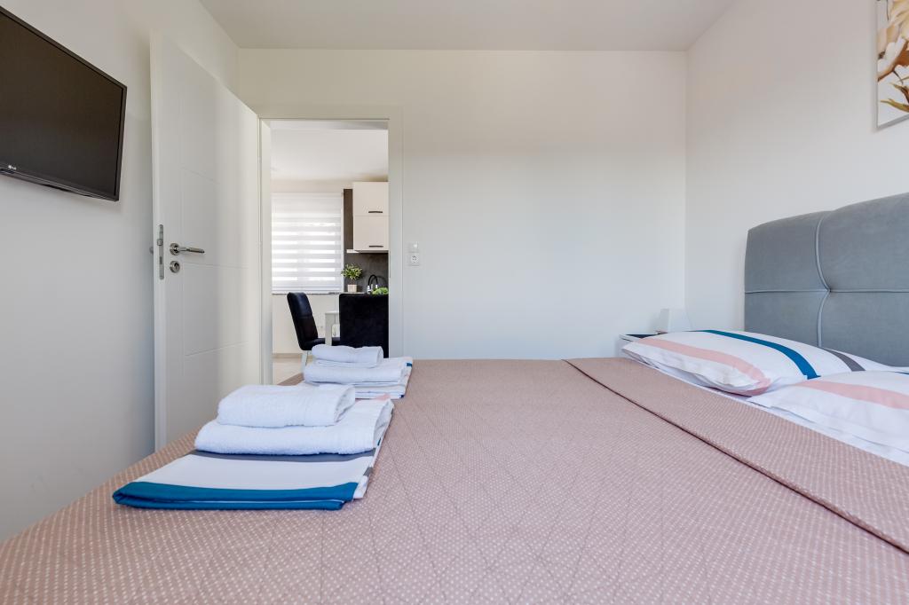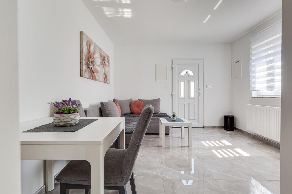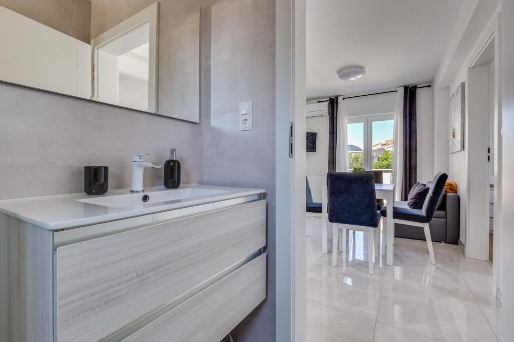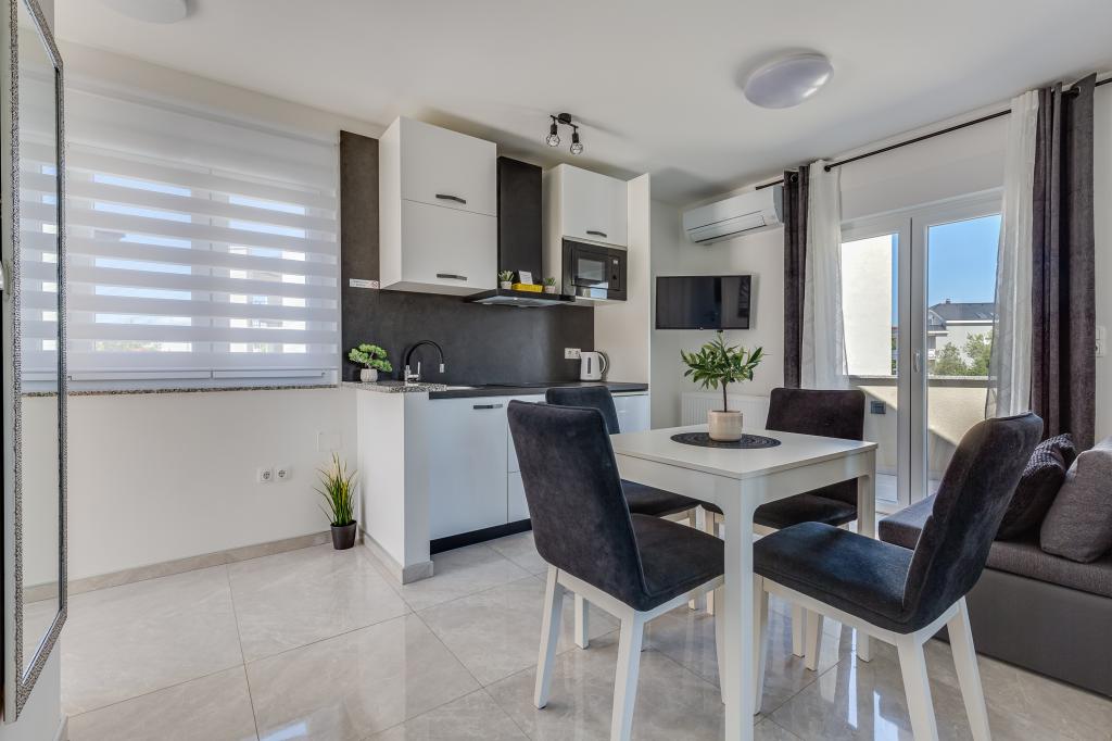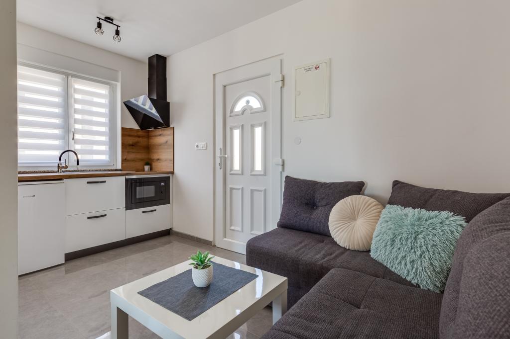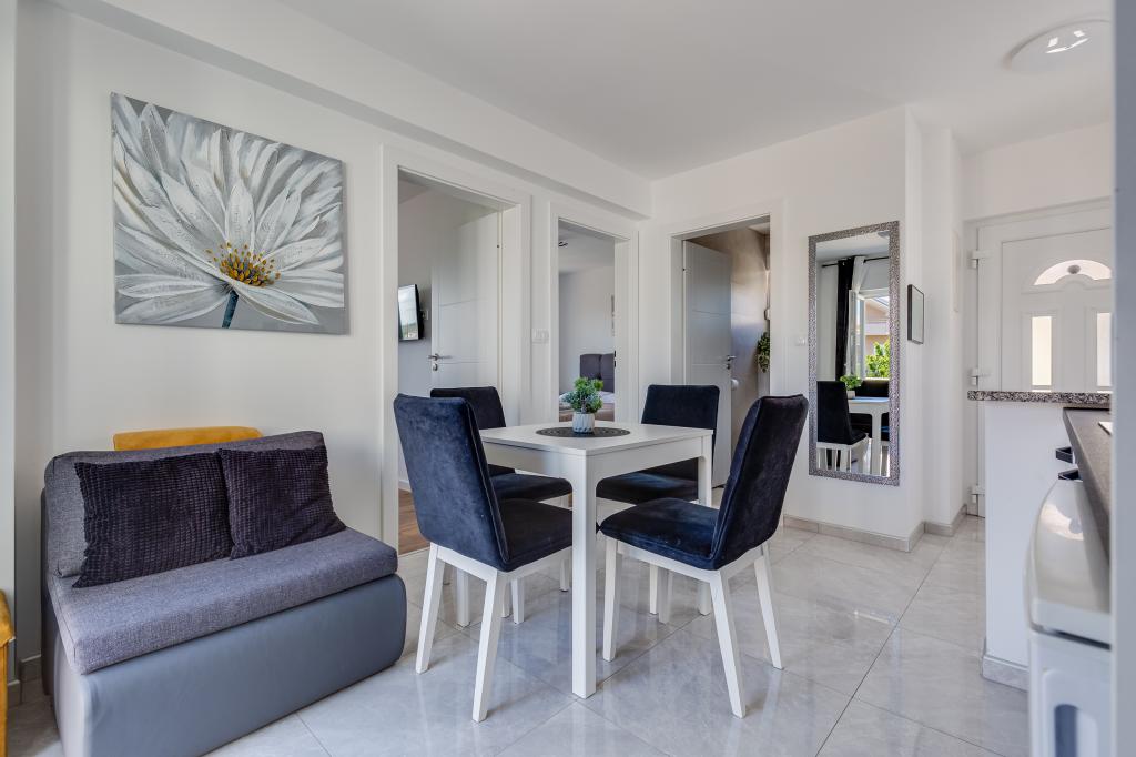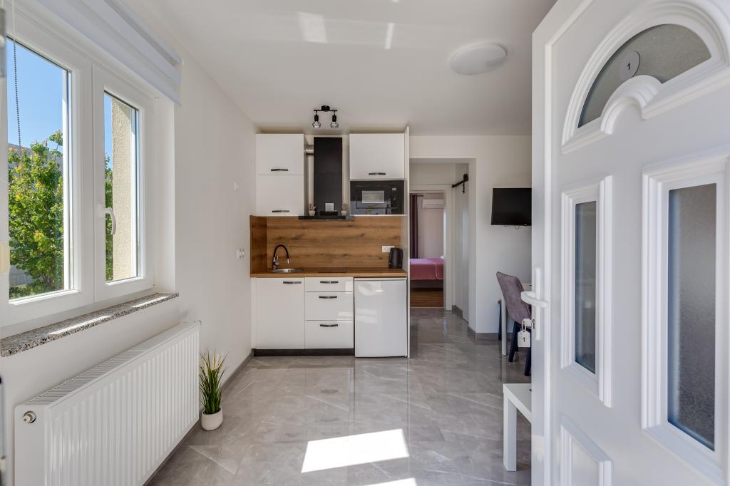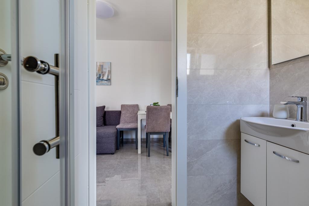Appartements entièrement équipés de façon moderne dans un quartier calme de Sukošan. Situé à 100 mètres de la mer et d'une plage de pierre. La propriété est située à 400 mètres de la plage de sable Djećji raj et à 500 mètres du centre de la ville et d'autres commodités. Vous pourrez vous détendre et profiter de cet hébergement confortable et d'une vue sur la mer. Il y a un barbecue commun dans la cour.