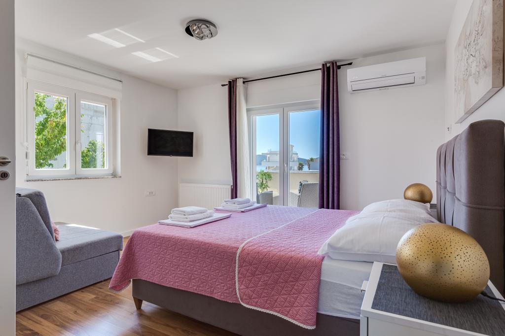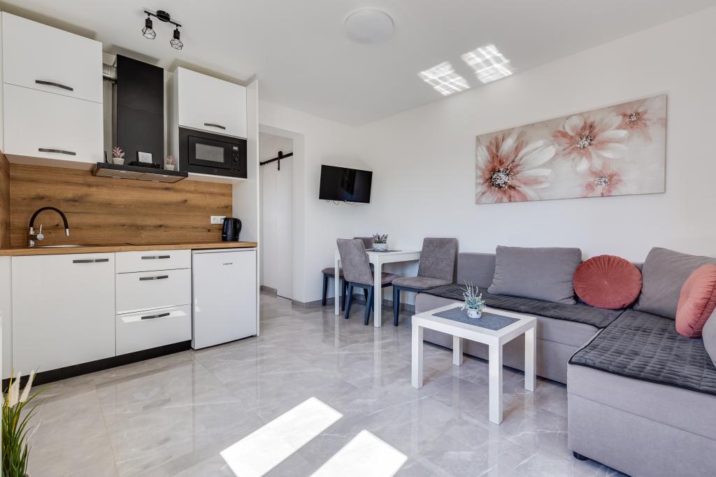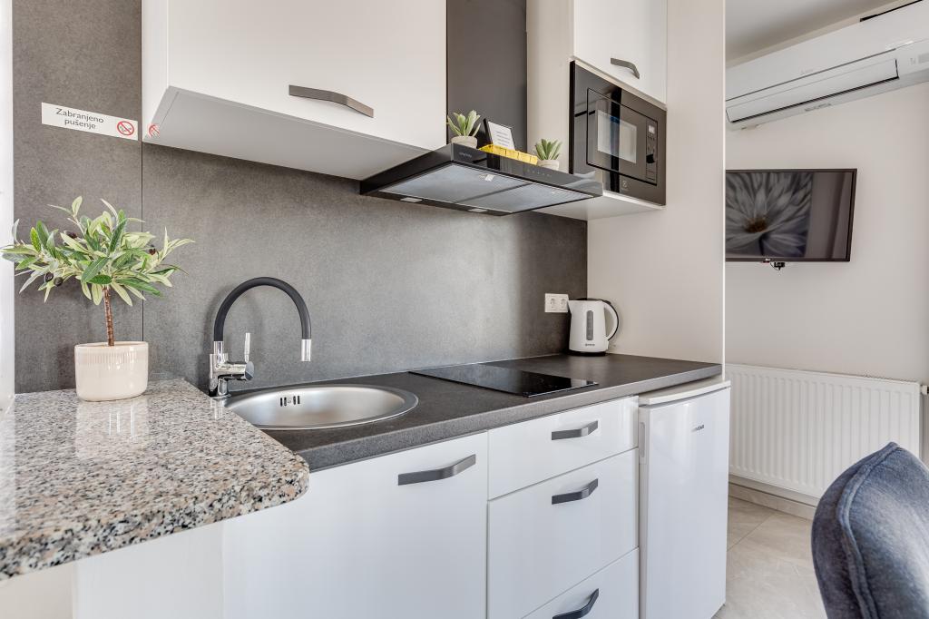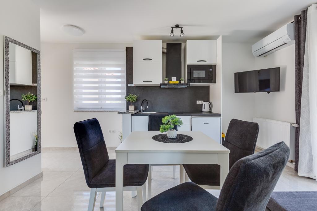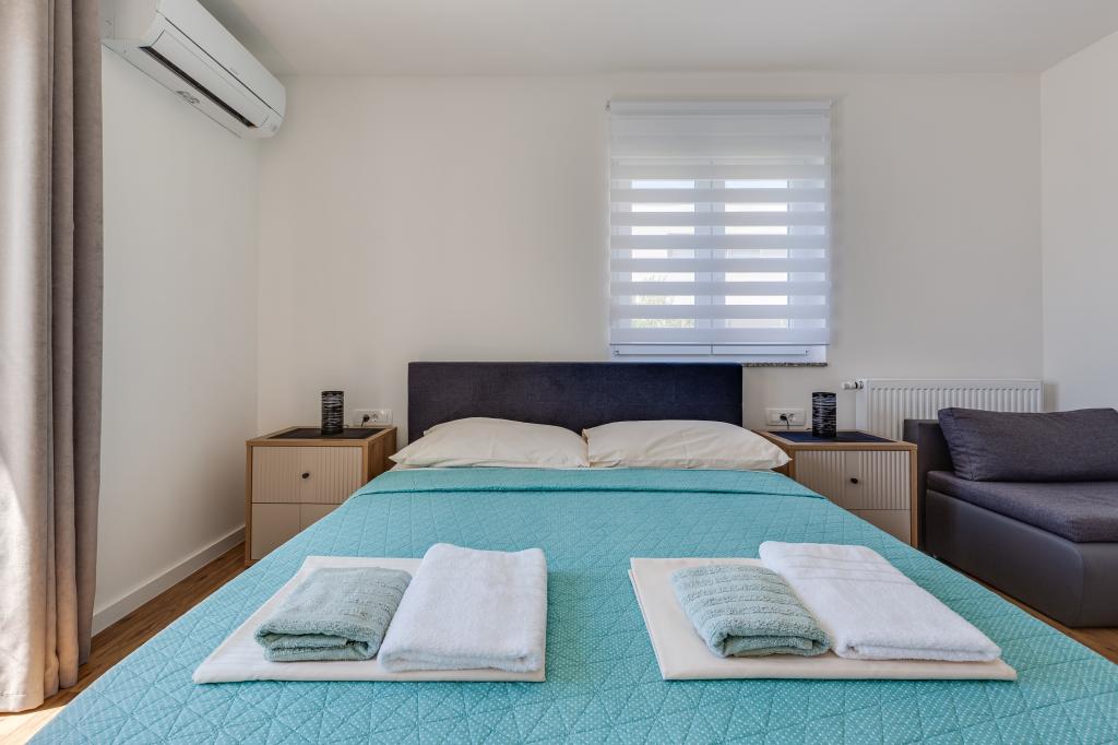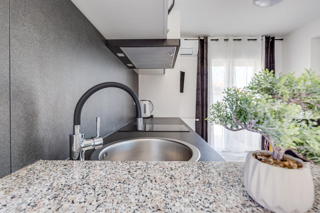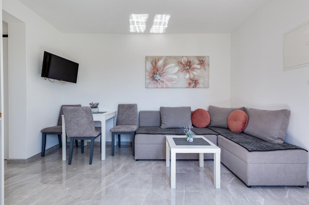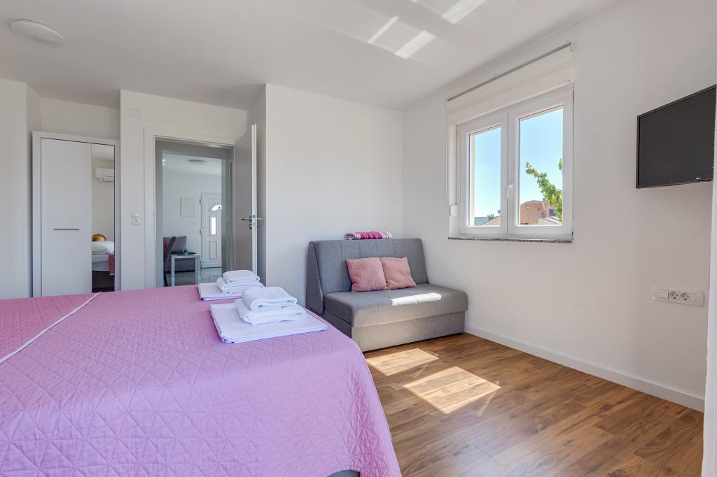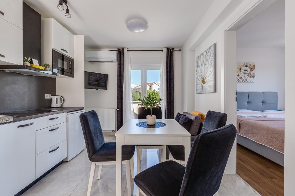 Appartements entièrement équipés de façon moderne dans un quartier calme de Sukošan. Situé à 100 mètres de la mer et d'une plage de pierre. La propriété est située à 400 mètres de la plage de sable Djećji raj et à 500 mètres du centre de la ville et d'autres commodités. Vous pourrez vous détendre et profiter de cet hébergement confortable et d'une vue sur la mer. Il y a un barbecue commun dans la cour.