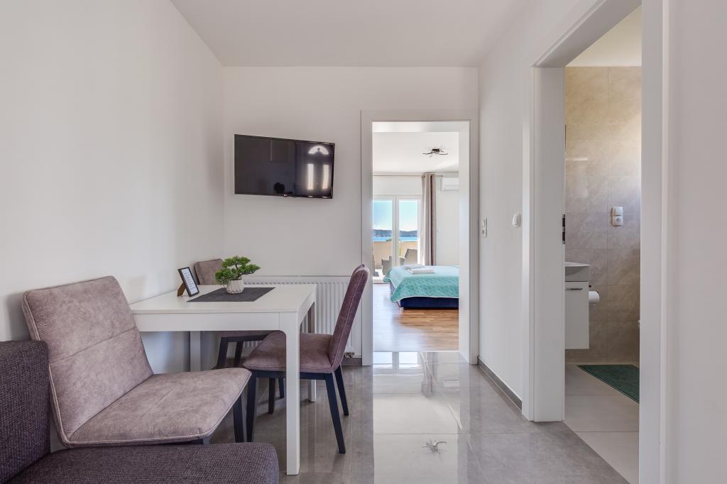 Un endroit avec une atmosphère merveilleuse. Je recommande du fond du coeur. Le propriétaire est accueillant et gentil, très serviable. Appartement moderne et propre avec une belle vue sur la mer.