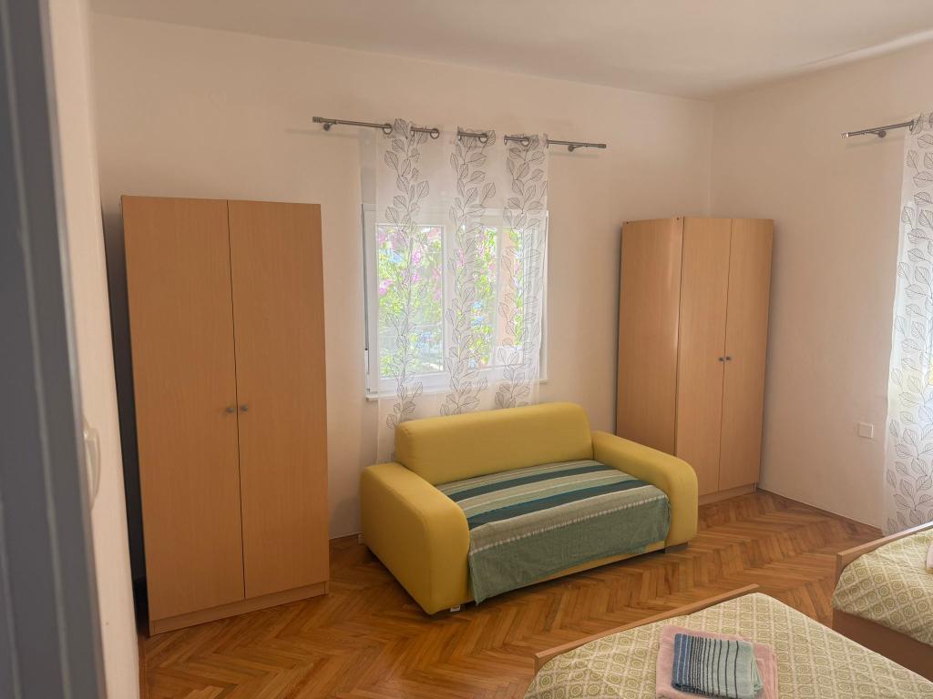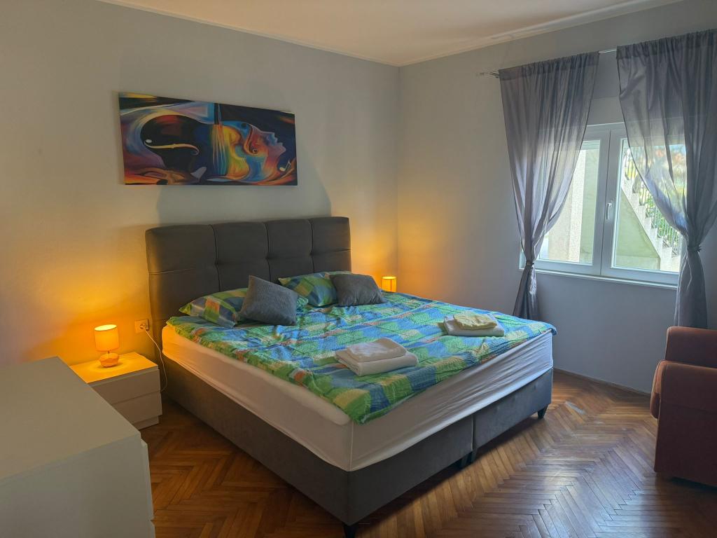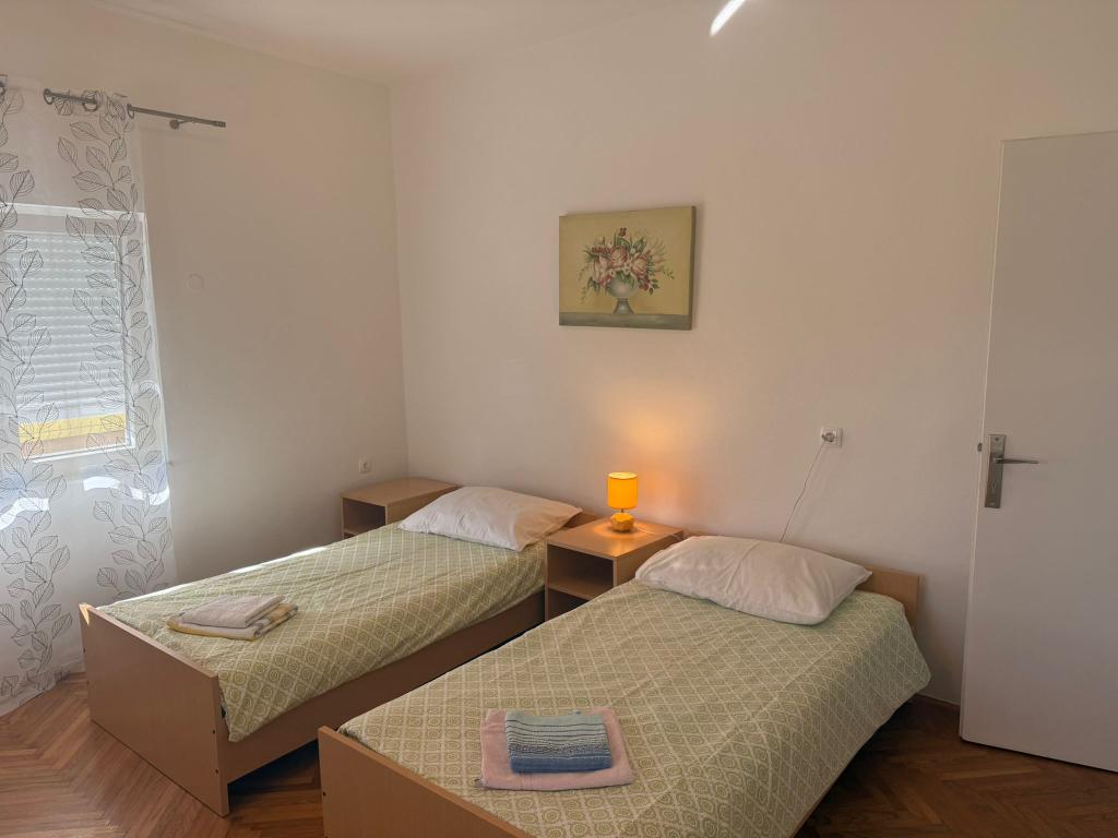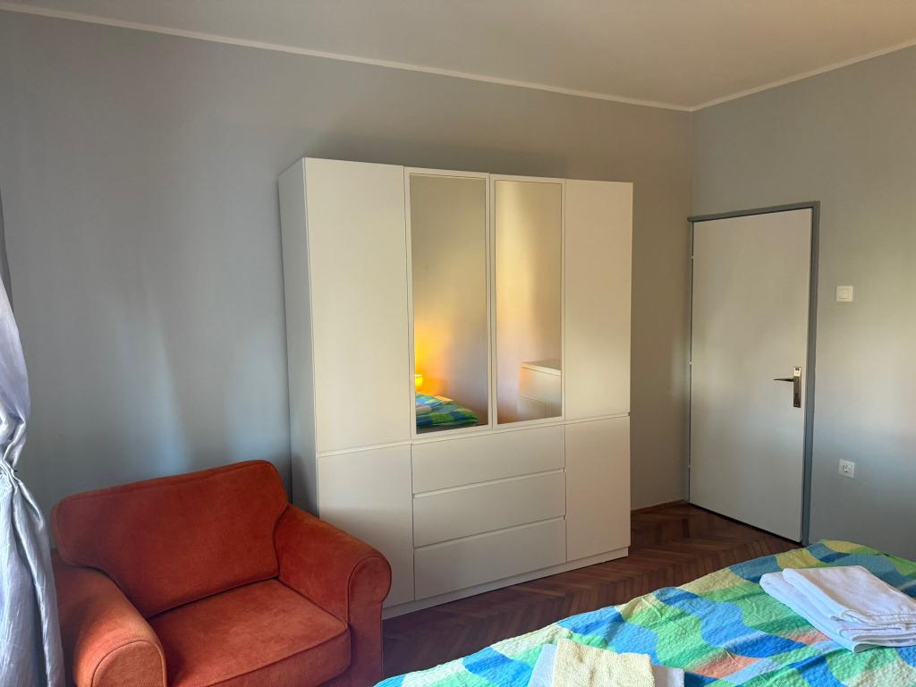 Appartement de 3 pièces au rez de chaussée de 100 m2 (2 chambres doubles + une chambre triple), cuisine et salle de bains. L'appartement dispose d'une terrasse de 50 m2. Parking et barbecue dans la cour. Prix négociable. Nouvel appartement avec air conditionné 2 +2 (une chambre, un canapé-lit dans le salon, cuisine, salle de bains et balcon). Parking et barbecue dans la cour. Nouveau appartement de 2 +2 (une chambre, un canapé-lit dans le salon, cuisine, salle de bains et balcon). Parking et barbecue dans la cour.