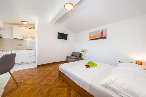 Chaque année, nous aimons visiter d'autres villes. En Septembre l'année dernière, nous avons séjourné dans cet hôtel. Ce était vraiment cool. Les propriétaires sont très gentils et serviables. Très calme et très proche de la plage. L'aménagement de l'appartement est très bonne, le lit était confortable. La propriété était propre et bien entretenu. Il était d'une télévision à écran plat avec centre USB, un restaurant et des magasins sont également très proches. En bref, tout était merveilleux, je veux dire de bons sentiments retour à la fête.