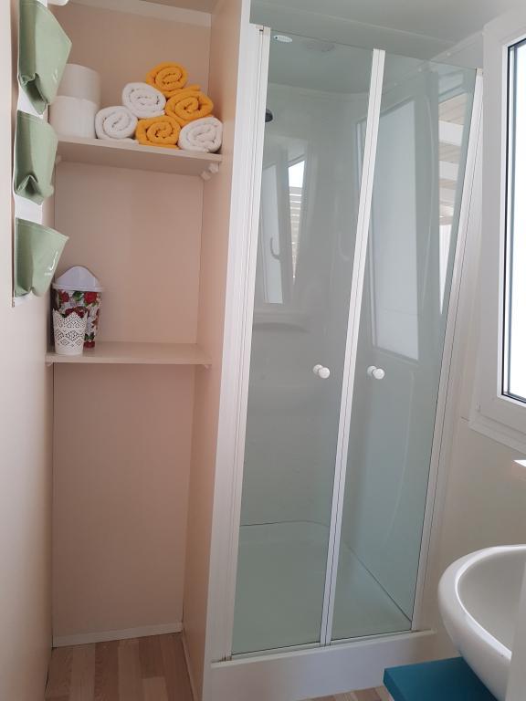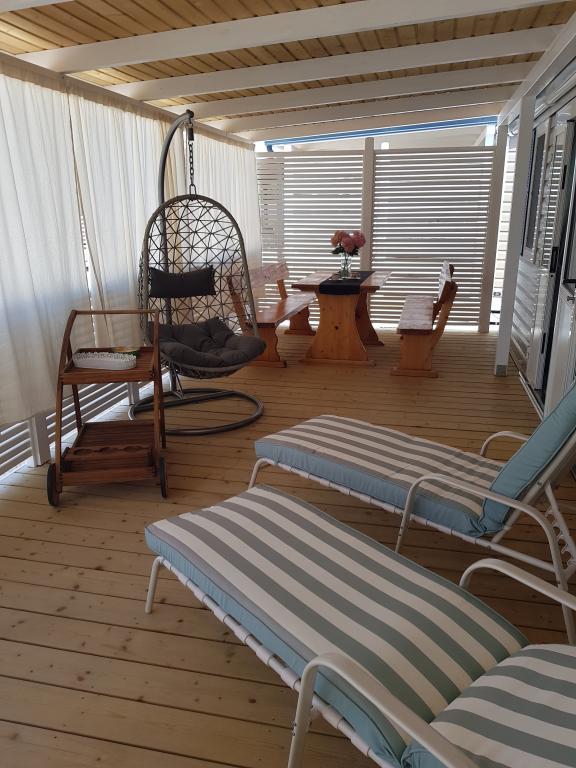 Séjournez dans des maisons individuelles au sein d'un petit camping familial situé juste à côté de la plage.