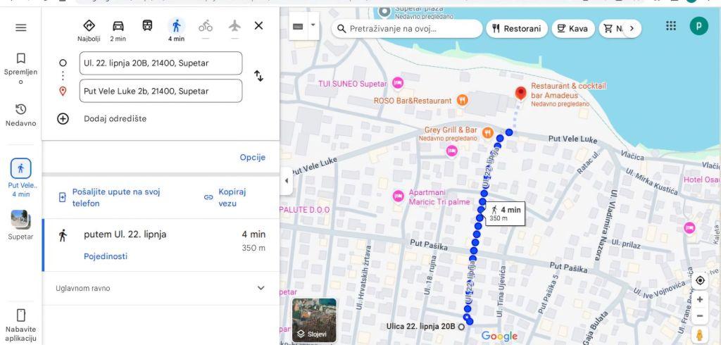 L'appartement Lukić est situé à Supetar sur l'île de Brač, dans un endroit extrêmement attrayant et paisible pour vos vacances bien méritées. L'appartement lui-même est situé à proximité du front de mer et des différentes plages de Supetar. La plage la plus proche est à seulement env. 250 m, magasin 400 m. L'établissement dispose d'un grand appartement au rez-de-chaussée pour 8 à 10 personnes. L'appartement est climatisé, dispose d'une cuisine, salle à manger, salle de bain, 2 WC, 4 chambres, terrasse, TV et WiFi gratuit. L'appartement dispose également d'un barbecue.