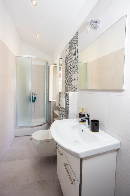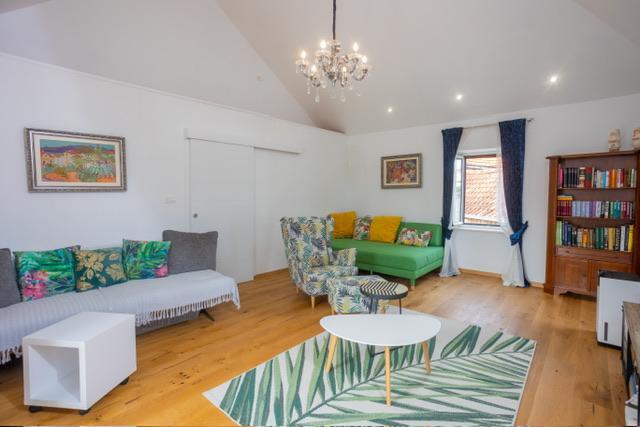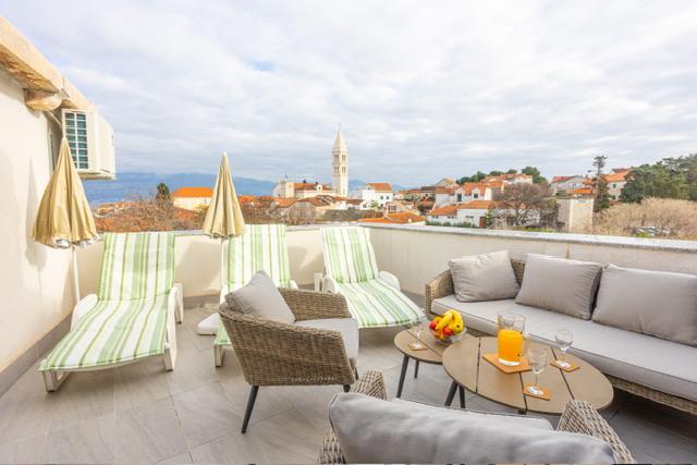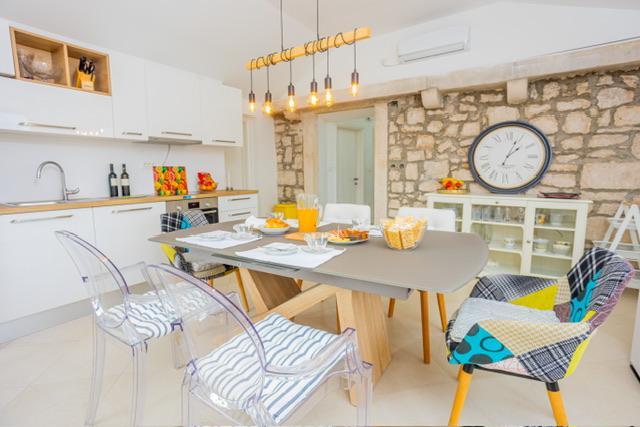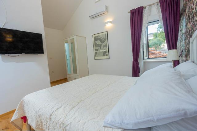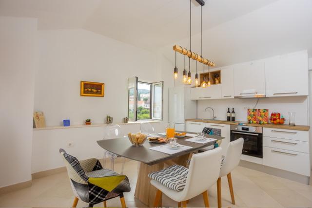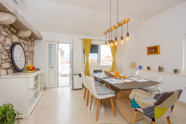 L'appartement est situé dans le centre de Supetar, à 100 mètres du front de mer, à côté de tous les sites touristiques de la ville, à 300 mètres de la première d'une série de plages de la ville. L'appartement fait 100 m2 : deux chambres avec chacune un lit double (160x200), et chacune de ces chambres dispose d'une salle de bain entièrement équipée avec douche ; l'appartement dispose également d'un grand séjour avec 2 lits d'appoint (120x200 et 160x200), qui possède également sa propre salle de bain, puis d'une cuisine et d'une belle terrasse avec vue sur la ville et le port. L'appartement est équipé d'un lave-linge, d'un lave-vaisselle, de 3 climatiseurs, de 2 téléviseurs, du WIFI et de tous les autres appareils nécessaires pour se sentir chez soi et passer des vacances agréables. Parking gratuit. Au début du XXe siècle, le peintre expressionniste croate Ignjata Job a vécu et créé ses œuvres les plus réussies dans notre maison, dans le quartier de l'appartement actuel. L'appartement a été rénové en 2021.