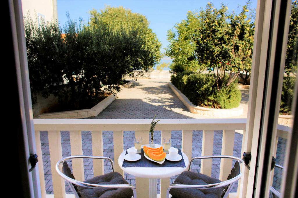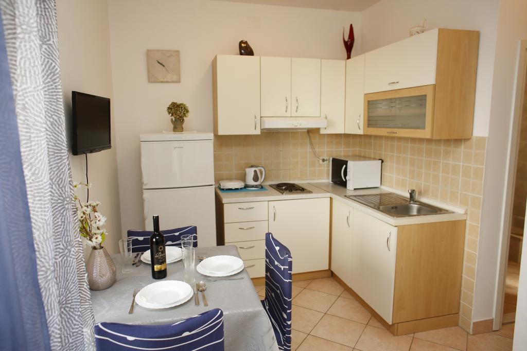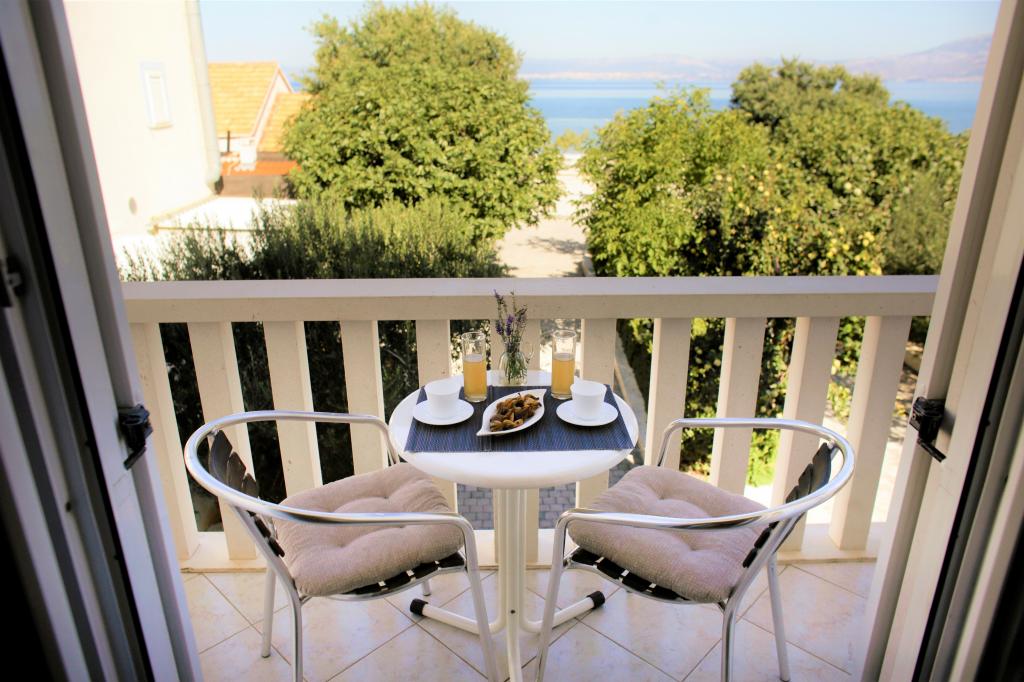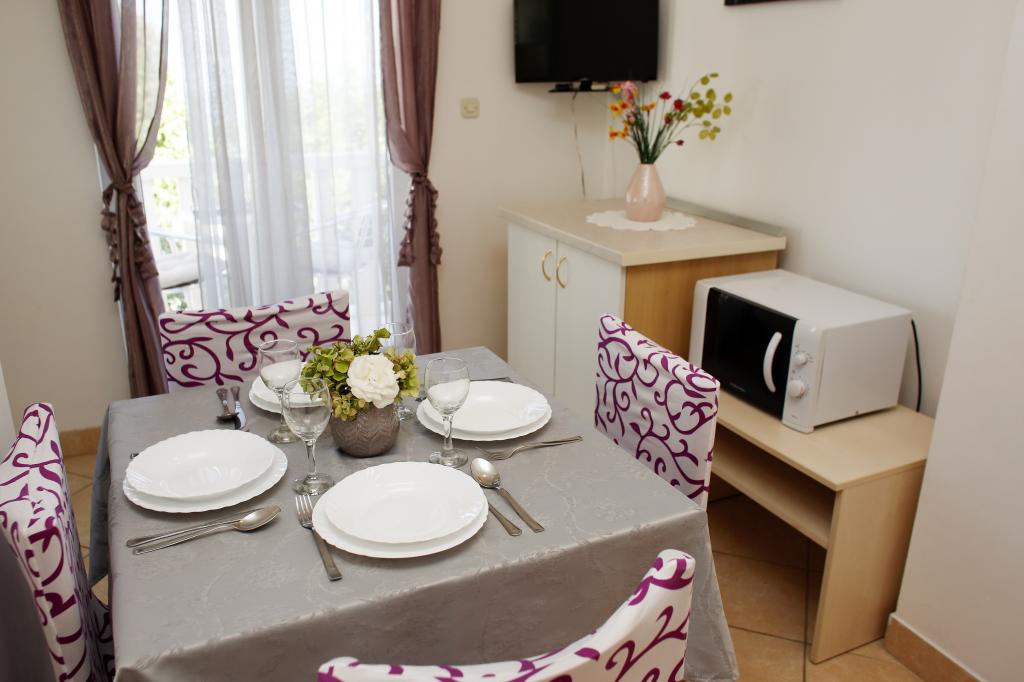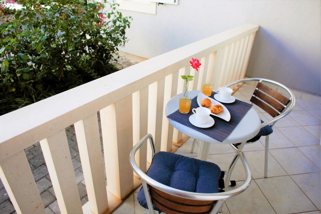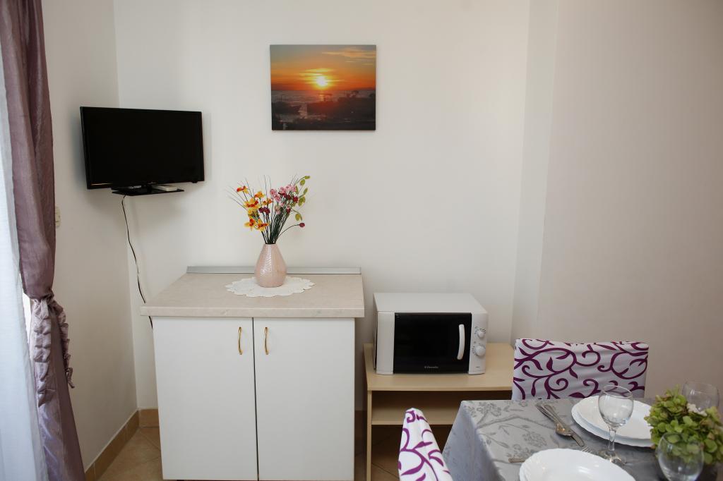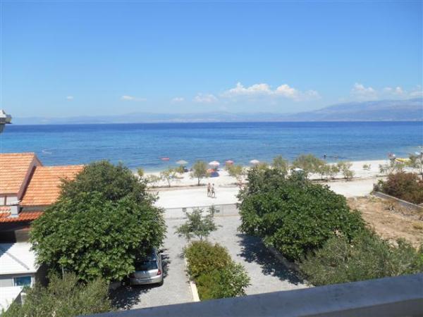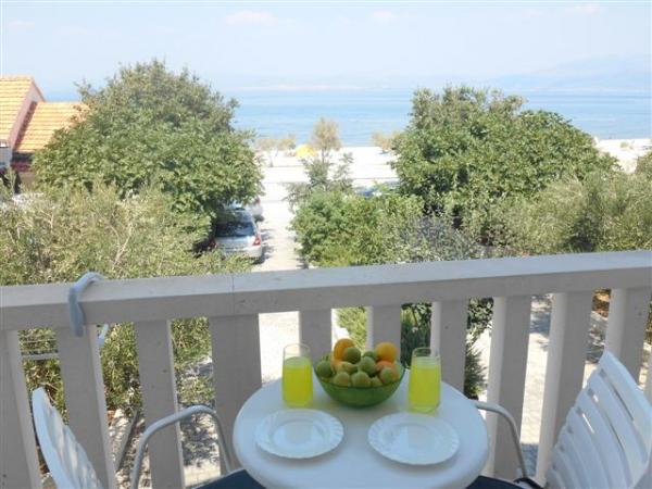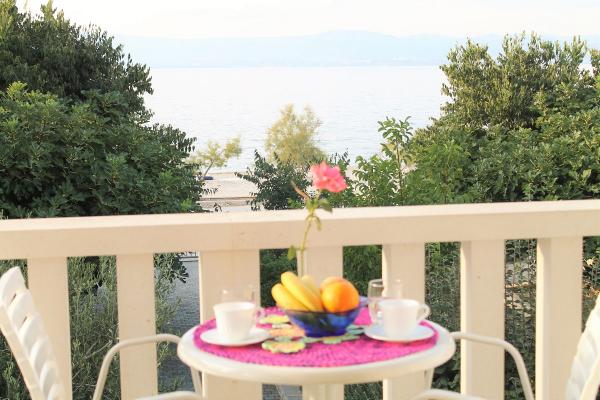 Nos appartements sont situés au premier rang de la mer, à quelques mètres de la plage, dans la petite et tranquille ville de Mirca. La cour est pleine de verdure avec de nombreuses fleurs et arbres fruitiers méditerranéens. Tous les appartements sont entièrement équipés, disposent d'un balcon avec vue sur la mer ou d'une terrasse extérieure privée, de la climatisation et d'une connexion Wi-Fi. Des places de parking sont situées dans la cour de la maison. Nous proposons également un grill où nos clients peuvent préparer leurs plats préférés. Nous aidons nos invités à préparer le barbecue, leur offrons une boisson et notre huile d'olive, qui accompagne parfaitement tous les plats. Les appartements sont situés à proximité de nombreux sentiers pour marcheurs et cyclistes, afin que les clients puissent profiter de la belle nature.