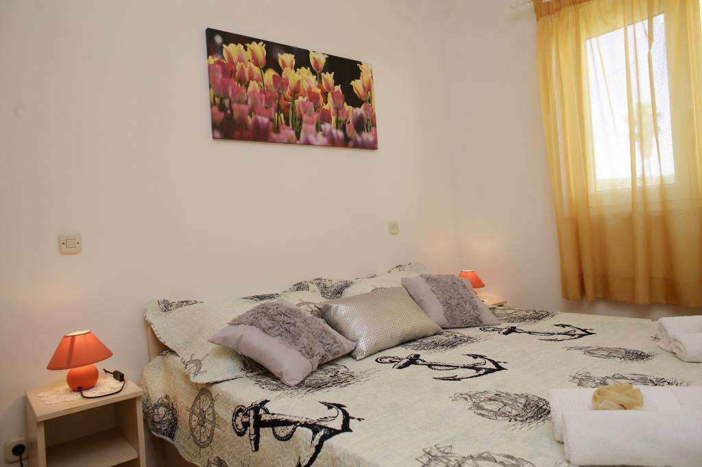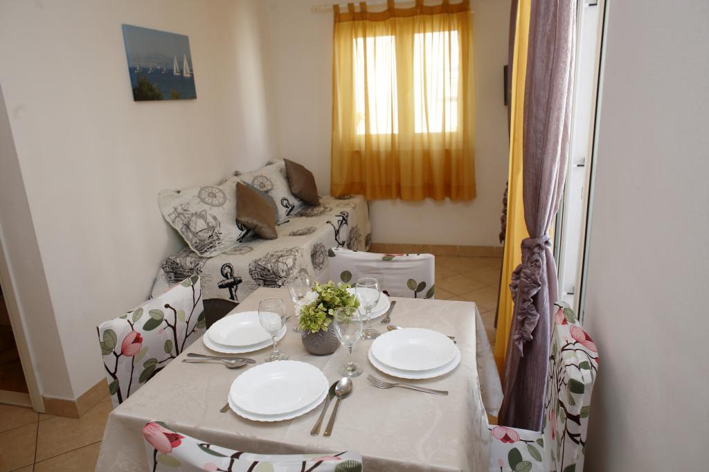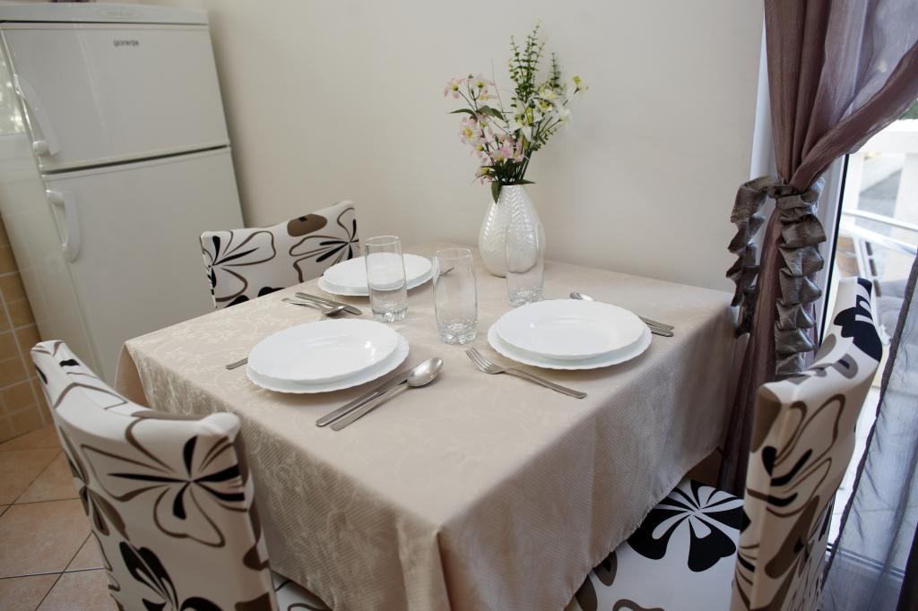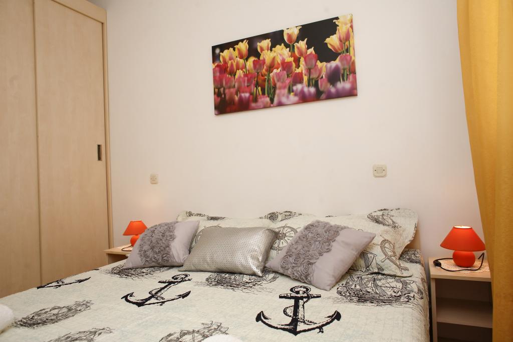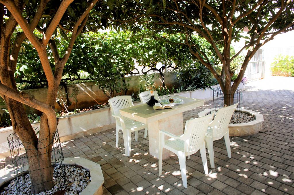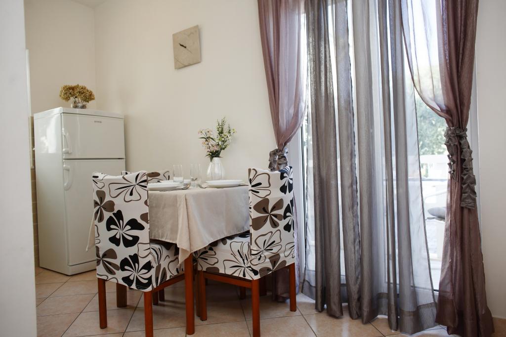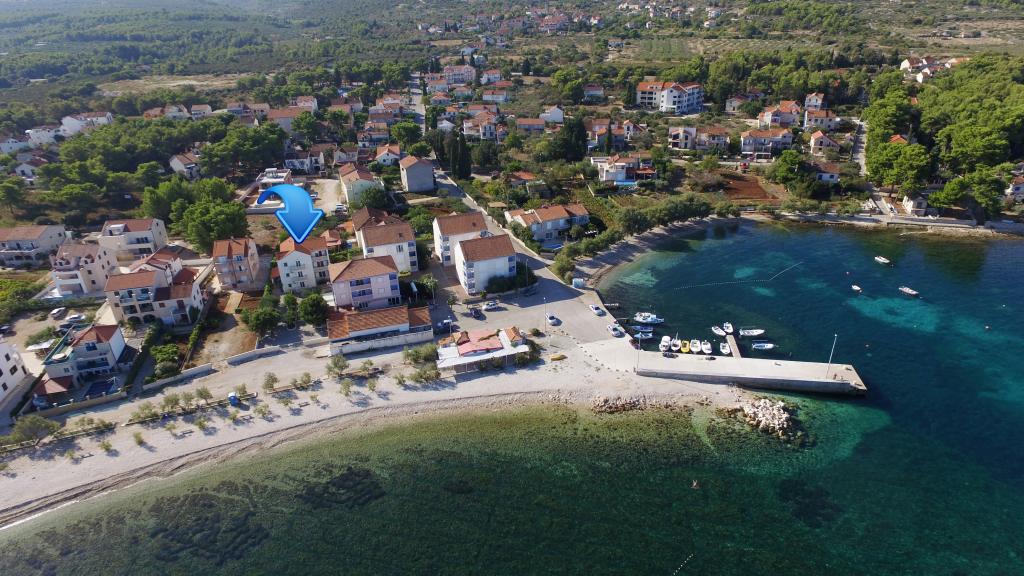 Nos appartements sont situés au premier rang de la mer, à quelques mètres de la plage, dans la petite et tranquille ville de Mirca. La cour est pleine de verdure avec de nombreuses fleurs et arbres fruitiers méditerranéens. Tous les appartements sont entièrement équipés, disposent d'un balcon avec vue sur la mer ou d'une terrasse extérieure privée, de la climatisation et d'une connexion Wi-Fi. Des places de parking sont situées dans la cour de la maison. Nous proposons également un grill où nos clients peuvent préparer leurs plats préférés. Nous aidons nos invités à préparer le barbecue, leur offrons une boisson et notre huile d'olive, qui accompagne parfaitement tous les plats. Les appartements sont situés à proximité de nombreux sentiers pour marcheurs et cyclistes, afin que les clients puissent profiter de la belle nature.