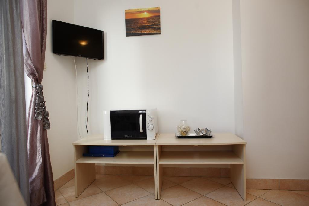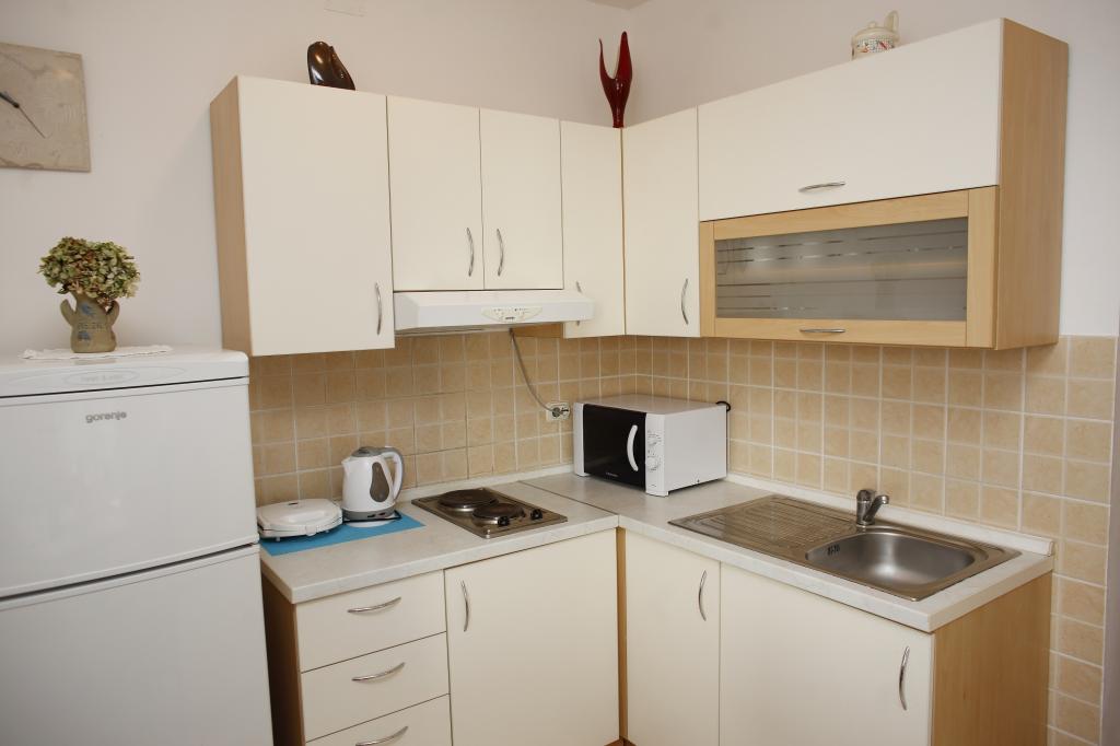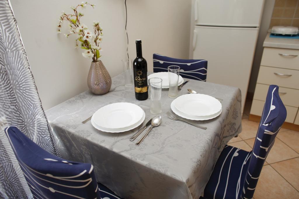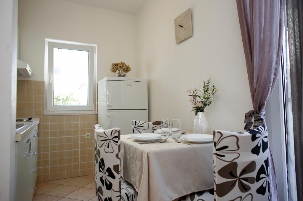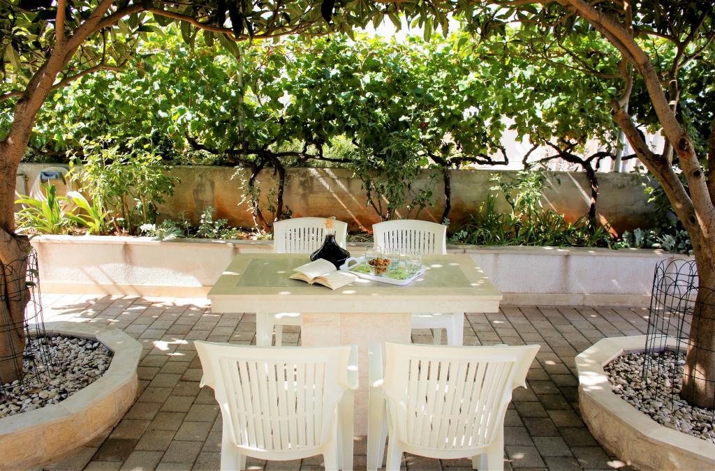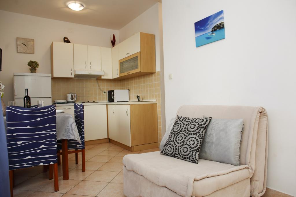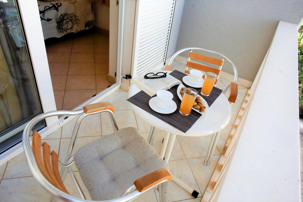 Nos appartements sont situés au premier rang de la mer, à quelques mètres de la plage, dans la petite et tranquille ville de Mirca. La cour est pleine de verdure avec de nombreuses fleurs et arbres fruitiers méditerranéens. Tous les appartements sont entièrement équipés, disposent d'un balcon avec vue sur la mer ou d'une terrasse extérieure privée, de la climatisation et d'une connexion Wi-Fi. Des places de parking sont situées dans la cour de la maison. Nous proposons également un grill où nos clients peuvent préparer leurs plats préférés. Nous aidons nos invités à préparer le barbecue, leur offrons une boisson et notre huile d'olive, qui accompagne parfaitement tous les plats. Les appartements sont situés à proximité de nombreux sentiers pour marcheurs et cyclistes, afin que les clients puissent profiter de la belle nature.
