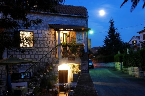 Nos appartements sont situés dans une maison traditionnelle en pierre dans le centre de Supetar. Dans la cour devant la maison, il y a un parking privé pour les voitures de nos clients. Sur la terrasse en face de la maison, les clients ont la possibilité de s'asseoir à l'ombre avec un verre de boisson, avec vue sur la mer. En outre, les clients ont la possibilité de préparer des repas sur le grill situé sur la terrasse en face de la maison. La plage est située juste en face de la maison, à 20 mètres. A proximité il y a un café, des restaurants, un bureau de poste, un kiosque et d'autres offres diverses. La maison est située dans un endroit parfait pour les clients qui veulent du confort lorsqu'ils sont en vacances. Tout est disponible en quelques minutes, sans utiliser de voiture, ce qui signifie parfait pour les familles avec de jeunes enfants.