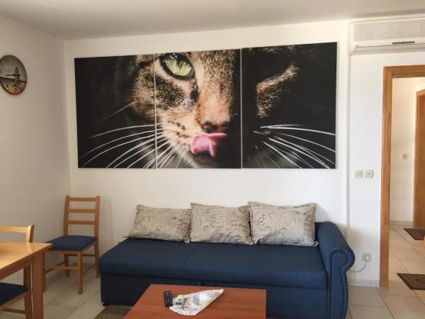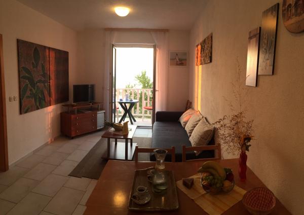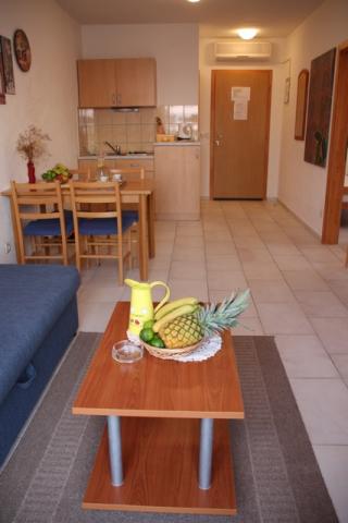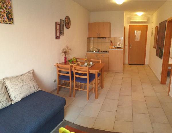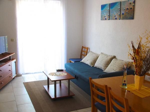 En savoir plus Unités d'hébergementLe paiement anticipé pour la réservation d'un appartement est de 20%. Le prix comprend: électricité et eau, serviettes dans la salle de bain, papier toilette et serviettes savon, literie, changement hebdomadaire du linge de lit, nettoyage de l'appartement le jour du départ, utilisation du climat. L'utilisation d'Internet est possible avec le bâton Internet et n'est pas incluse dans le prix de l'appartement. La cuisine est entièrement équipée avec des casseroles, des casseroles, des couverts, fûts, assiettes, torchons, bouilloire, réfrigérateur, congélateur, cuisinière ... L'appartement peut être pris à partir de 12 h. Le jour du départ, l'appartement doit être libéré avant 10 h.