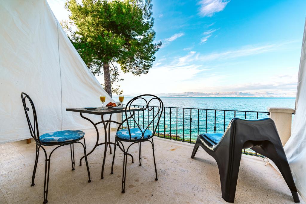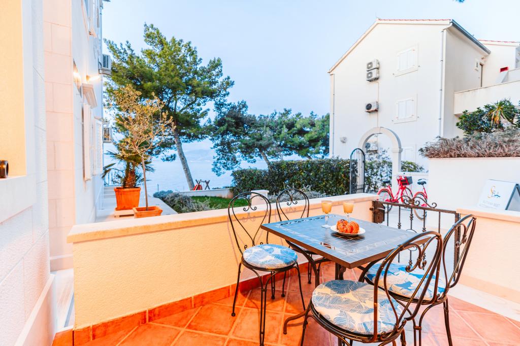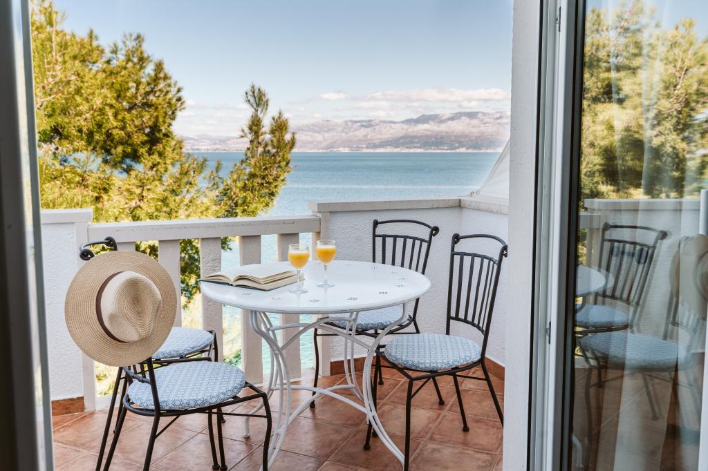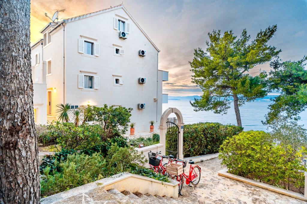 Vous nous trouverez à Sutivan, sur la magnifique île de Brač. Venez nous rejoindre par la mer : l'Adriatique est à nos pieds. Respirez profondément dans notre jardin méditerranéen et oubliez le stress. Une aire de jeux pour enfants se trouve devant la maison, une plage de sable fin est à proximité, et aux alentours s'étend une dense pinède et de innombrables pistes cyclables serpentant à travers les oliveraies. Empruntez gratuitement nos vélos pour aller prendre un café ou faire vos courses. Trouvez l'hébergement idéal dans notre villa en bord de mer. Choisissez un appartement spacieux ou un studio compact, tous deux confortablement équipés d'un mobilier moderne. La maison est située en bord de mer, à 15 minutes à pied du centre-ville, dans un havre de paix où verdure, mer et soleil se conjuguent harmonieusement. Entourée d'un jardin soigné et de pins, elle offre depuis tous ses appartements une vue imprenable sur la mer cristalline.