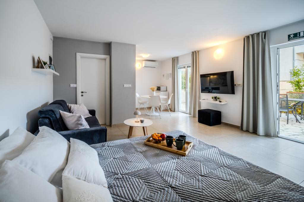 Les appartements 4 étoiles récemment décorés sont situés dans le quartier calme de Sutivan. Chaque appartement dispose d'une grande terrasse et comprend: wi-fi, climatisation, satellite, télévision à écran LCD, lave-vaisselle. Ils sont situés à 10 minutes à pied du centre, de la poste, des restaurants, des magasins et à 100 m de l’une des plus belles plages de galets de Sutivan.