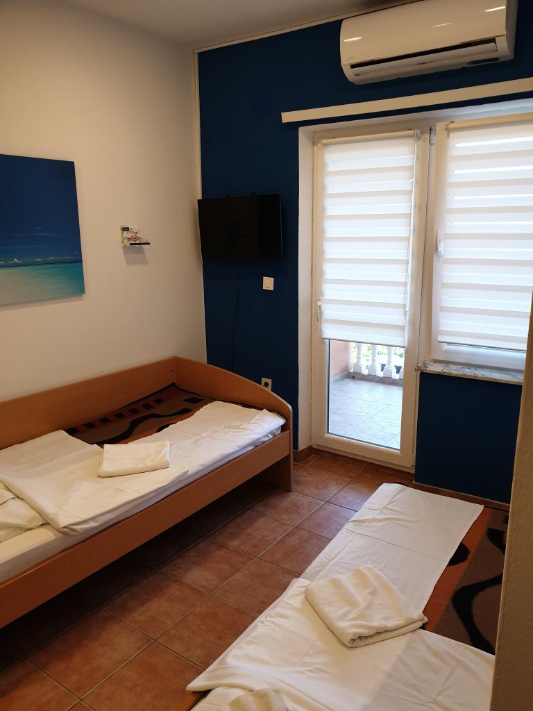 Il y a trois places de parking dans la cour de la maison. Derrière la maison, il y a un grill et un four à usage commun, ainsi qu'une balançoire pour les enfants. Il y a trois appartements au premier étage de la maison. Chaque appartement a sa propre entrée et clé du même hall d'entrée. Chaque appartement dispose d'une cuisine avec deux cuisinières électriques, d'une salle de bain avec douche, d'une table et de chaises pour les repas, d'une télévision avec programmes satellite et locaux et de la climatisation. Dans l'appartement 1, le lit double mesure 180 cm de large et dans les autres appartements, il mesure 160 cm de large. Tous les appartements disposent de réfrigérateurs avec congélateur jusqu'à 10 litres. L'appartement 1 a une partie de la terrasse d'entrée avec une pergola, qui offre une vue magnifique sur Ravne kotare et Velebit. Dans l'appartement 2 (studio 2+2), le lit double est placé de manière à ce que les enfants des lits superposés ne puissent pas le voir et que tout le monde puisse voir la télévision accrochée au mur. Il a un balcon de 6 mx 1,2 m L'appartement 3 a une chambre séparée avec deux lits supplémentaires dans la salle à manger, et il y a aussi une loggia où vous pouvez manger.
