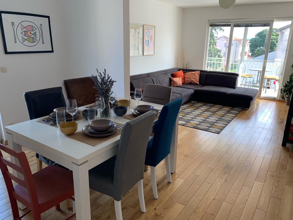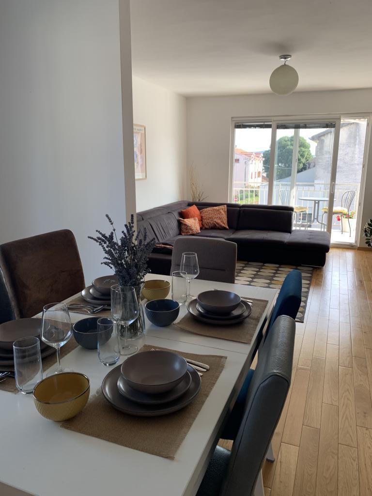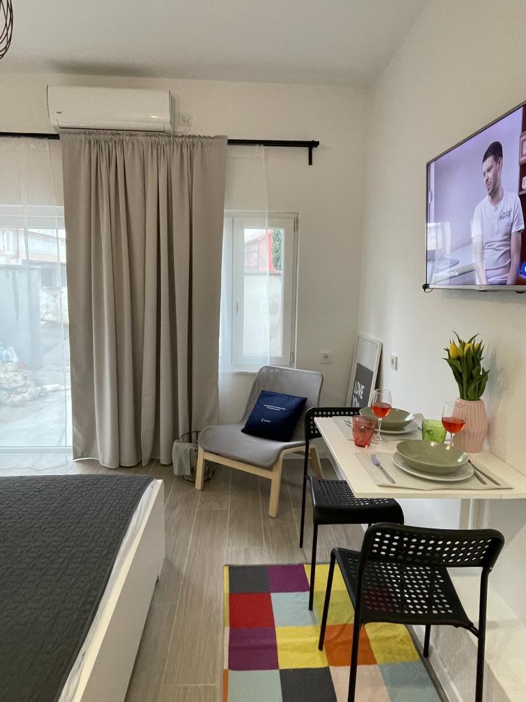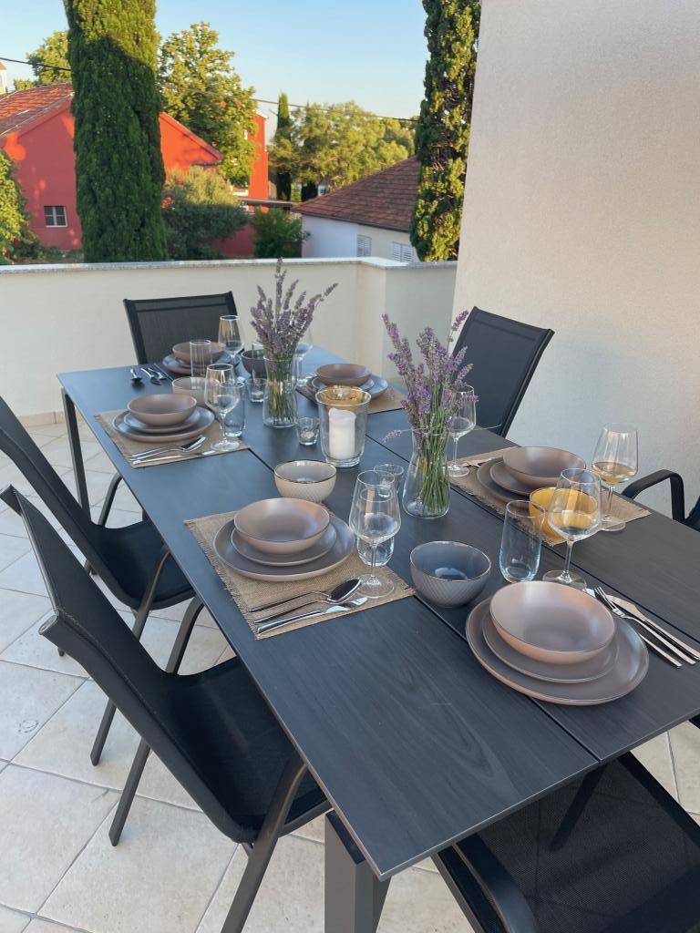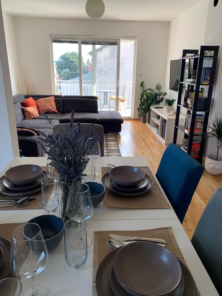 Un studio entièrement équipé avec terrasse est situé au rez-de-chaussée d'une maison familiale dans le centre de Sveti Filip i Jakov. L'appartement de trois chambres, entièrement équipé, avec une grande terrasse avec salon de jardin est situé au premier étage de la maison. Les appartements sont situés à 5 minutes à pied de la plage la plus proche (vous pouvez choisir entre galets, sable ou béton), des restaurants, des magasins, de la poste, des installations sportives, des cafés-bars... Le parking est prévu devant la maison et est inclus. dans le prix. Un barbecue est également à votre disposition...