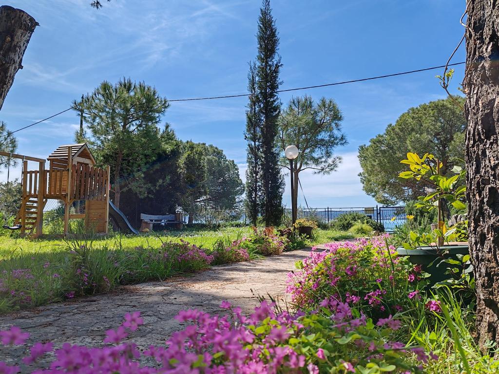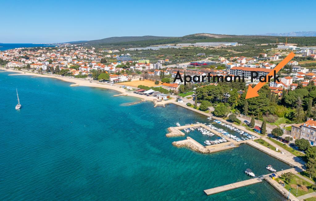Park Apartments sont situés dans une ancienne pinède en bord de mer, à 30 m de la mer et environ 50 m de la plage! A l'ombre d'un grand jardin clôturé il ya le tennis de table, belvédère avec barbecue, cuisine extérieure, bar et d'un réfrigérateur, des balançoires et jeux pour enfants et un parking.