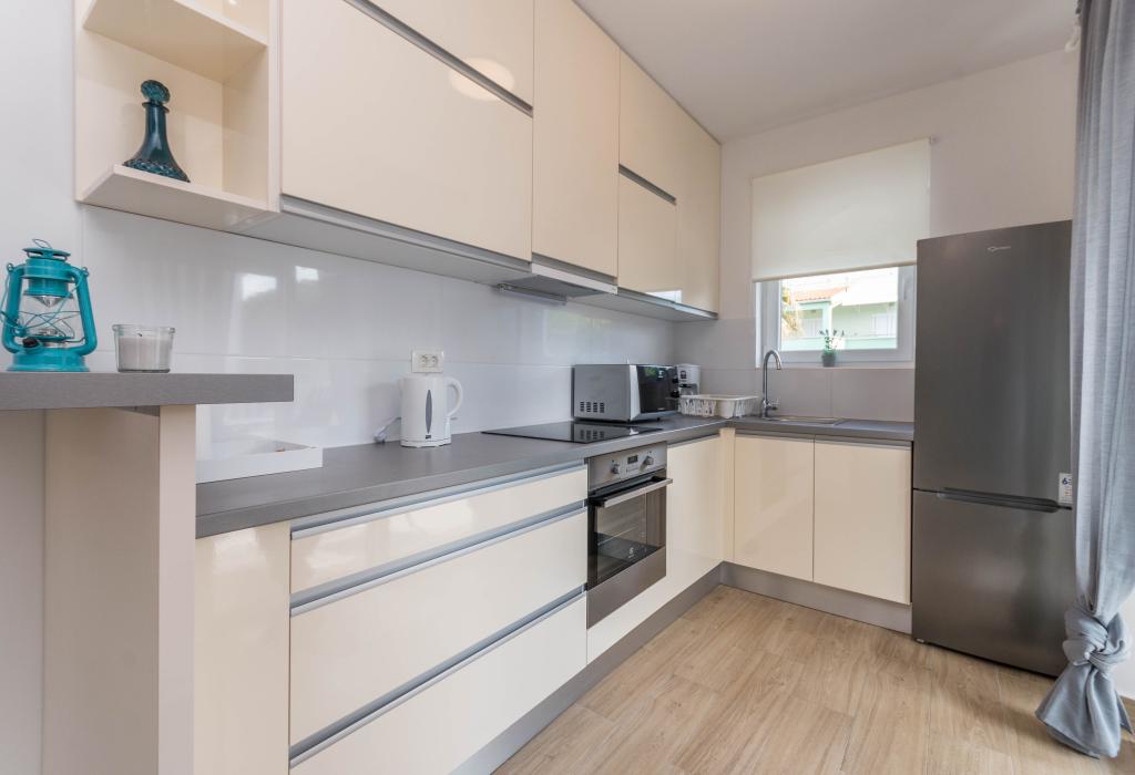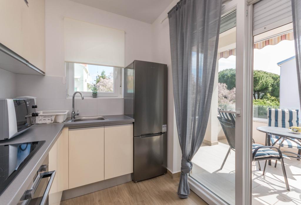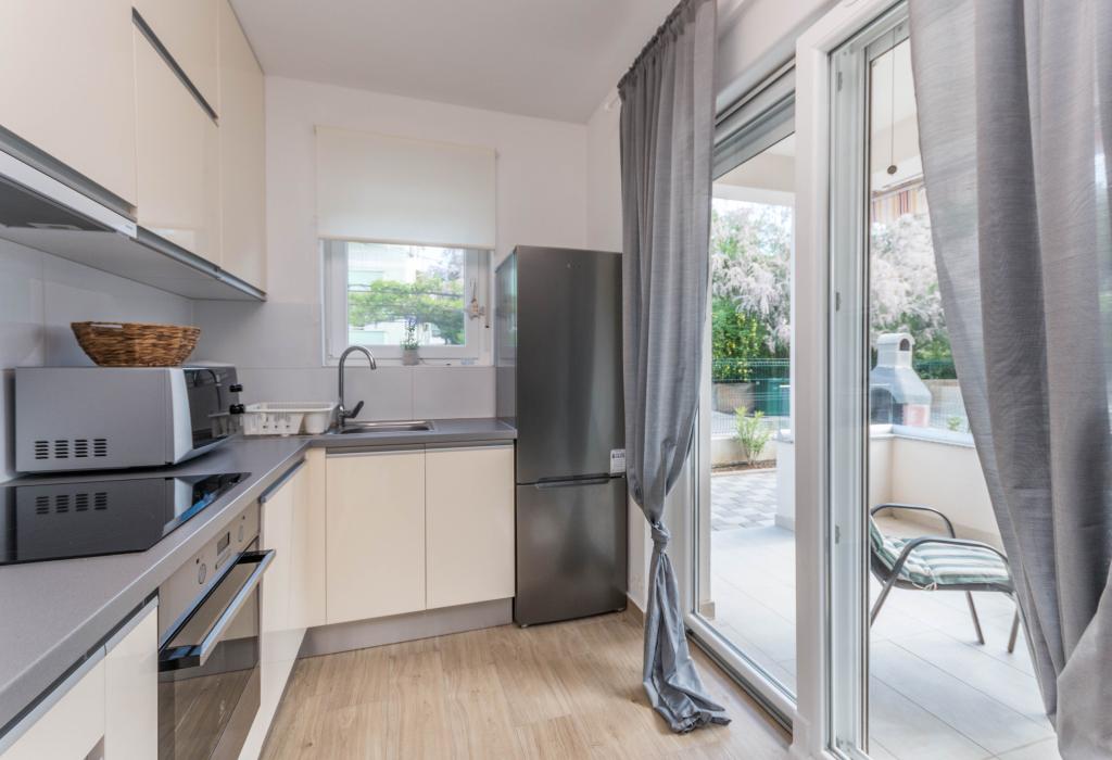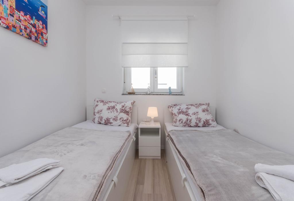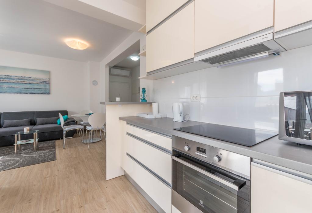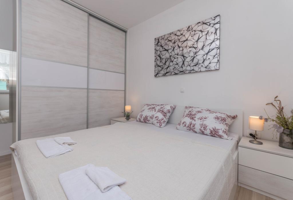Le bâtiment a été construit comme une maison de 6 appartements qui ont été construits à dessein comme des unités individuelles (appartements), avec une entrée séparée, à l'intérieur d'un escalier commun. L'appartement Turquoise 1 convient aux familles avec enfants car sur 58 m2 il propose 2 chambres, une cuisine confortable avec un séjour ouvert. La cuisine comprend un lave-vaisselle, un four micro-ondes, une cafetière, un grand réfrigérateur avec congélateur, une cuisinière électrique avec four et une plaque vitrocéramique. Le salon dispose d'une télévision 52 ", WIFI gratuit. A côté du salon il y a une grande terrasse et cour avec barbecue. La salle de bain offre une machine à laver, un sèche-cheveux, des serviettes et des produits d'hygiène de base. L'appartement est situé à 50m du plage avec de petites pierres et la côte, à 100 m du centre-ville et d'autres installations.L'appartement 2 est situé au 1er étage de l'immeuble et n'a pas le droit d'utiliser la cour.A l'intérieur de la salle de bain il n'y a pas de machine à laver.