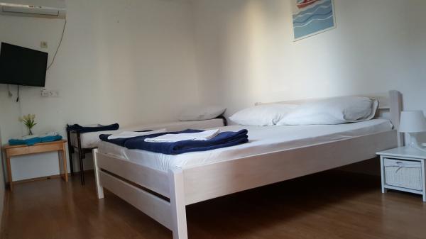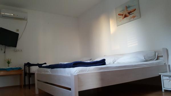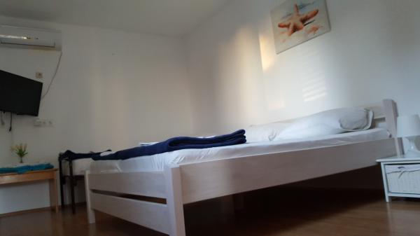 Taxe de sejour est inclus dans le prix.C'étaient nos premières vacances en Croatie. Trouver un logement à la dernière minute s'est avéré difficile, mais nous avons finalement réussi. Un peu inquiets d'avoir réservé à l'aveuglette, nous avons été rassurés dès le départ par la qualité de la communication. À notre arrivée, la propriétaire, très accueillante, nous a montré notre chambre et nous avons réglé les formalités. Pendant tout notre séjour, elle était toujours disponible par e-mail et autres moyens, ce qui nous a permis de résoudre le moindre problème. Nous communiquions facilement en anglais et, en cas de difficulté, nous pouvions utiliser un traducteur. L'appartement était tout à fait correct pour le prix. La chambre n'était pas la plus moderne, mais les lits étaient confortables, la propreté était satisfaisante, les serviettes étaient fournies et la petite cuisine était entièrement équipée : tout le nécessaire. Il faisait chaud à notre arrivée, mais la climatisation s'est avérée efficace par la suite. Nous l'utilisions parfois en sortant et retrouvions un appartement frais. Comme toujours, nous tenions à éviter l'utilisation de la climatisation avec des enfants, car cela peut facilement les rendre malades. Les propriétaires ne nous l'ont pas signalé, bien que le règlement interdise l'utilisation de la piscine après notre départ. Je pense qu'ils ont trouvé un compromis et qu'ils ne nous en tiennent pas rigueur, tout comme nous avons respecté ce compromis. Tous ces inconvénients sont largement compensés par la vue sur la mer depuis le dernier étage et la terrasse, où ma femme et moi avons passé de merveilleuses soirées à écouter le chant des cigales – un vrai bonheur ! Le quartier est agréable, la montée vers l'appartement est un peu raide, mais cela ne nous a pas dérangés, même si les enfants l'ont parfois un peu moins. La plage est à environ 10-12 minutes à pied. On trouve tout à proximité : une plage peu fréquentée, de sable et de galets, une eau cristalline, de délicieuses glaces, un large choix de restaurants, pour tous les budgets, une promenade pour flâner le soir, des croisières vers les îles Kornati et d'excellents produits locaux recommandés par les propriétaires. Le soir, c'était paisible et calme, et si quelqu'un voulait sortir en ville pendant notre séjour, il y avait une fête des récoltes, un concert, un feu d'arti