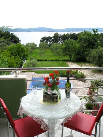 Villa "Smirna" 4*, PISCINE, 1 RANGÉE, VUE Région de Zadar, Biograd na moru - Sveti Filip i Jakov, BELLE PLAGE, VERT NATUREL, 8 TYPES D'APPARTEMENTS DIFFÉRENTS, grande cour, transats, barbecue, verdure, donnez-le charmes spéciaux. Les 8 TYPES DIFFÉRENTS d'appartements donnent sur la mer et les îles. Il est situé au premier rang de la mer. L'accès à la mer est de sable et de galets, et la plage aménagée est dotée de douches et de verdure naturelle. Dans la cour il y a un barbecue, espace de convivialité, : Catégorisation 4* Réception Parking privé Distance de la plage : 75m Distance du magasin : 25m Distance du restaurant : 50m Distance du centre : 300m Distance de l'hypermarché : 2km Distance de Biograd : 2 km Distance de Zadar : 25 km Cascades de Krka : 30 km Kornati : 30 km Rafting sur l'île de Zrmanja en bateau Split Međugorje Dubrovnik INSTALLATIONS : Piscine (la piscine a de l'eau de mer, nager sans sauter est autorisée de 8 à 20 h) Jardin Chaises longues Tables et chaises autour de la piscine Kavomat Location de vélos Dučan 50 m Ménage dans les appartements