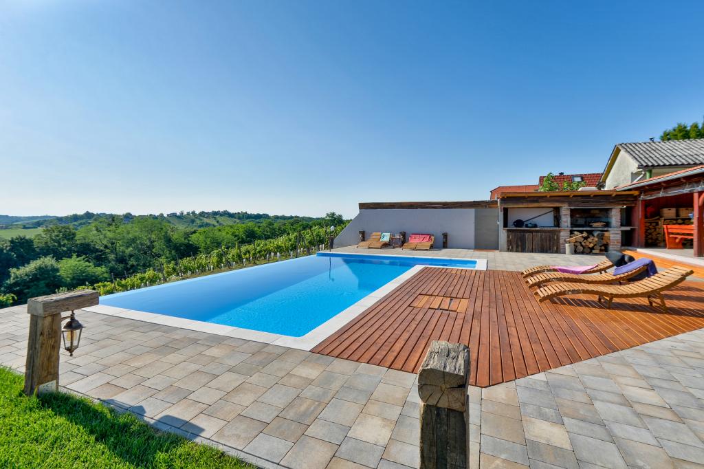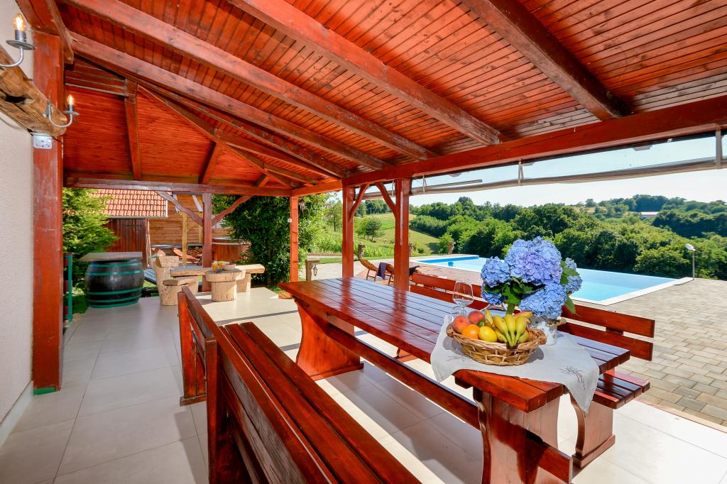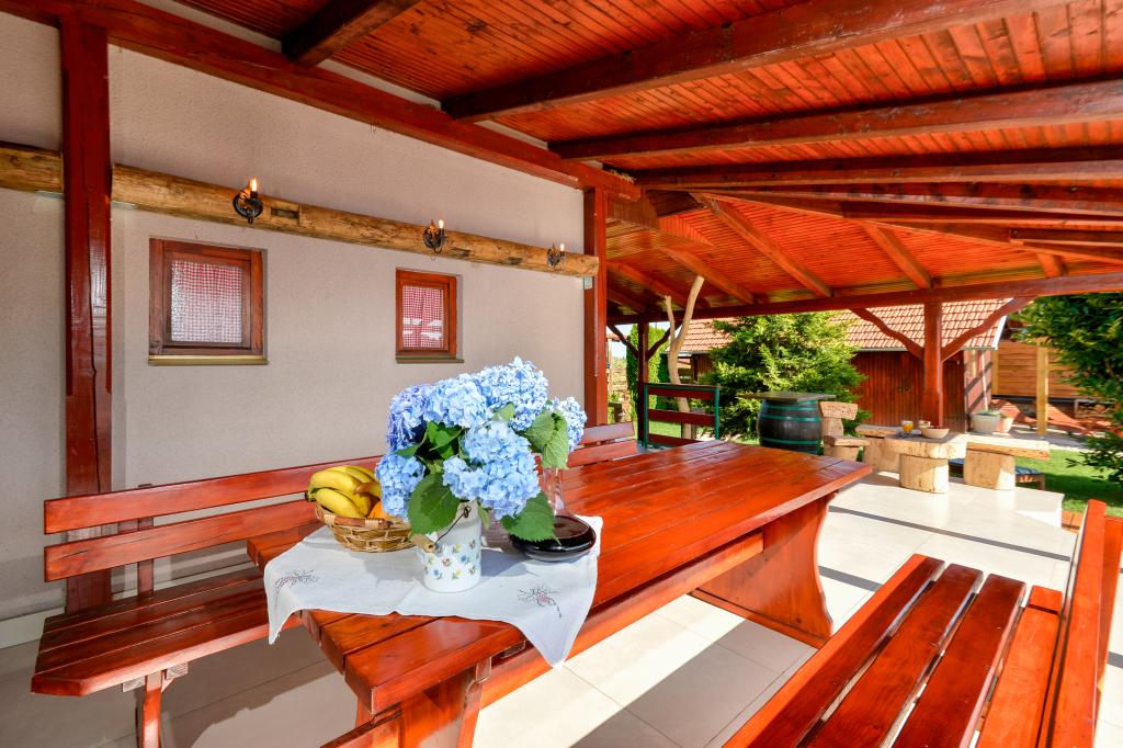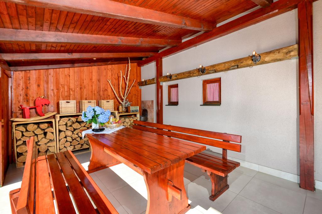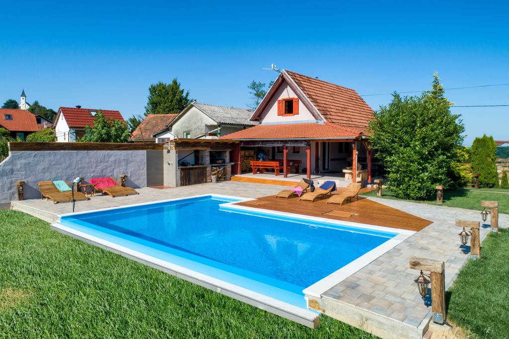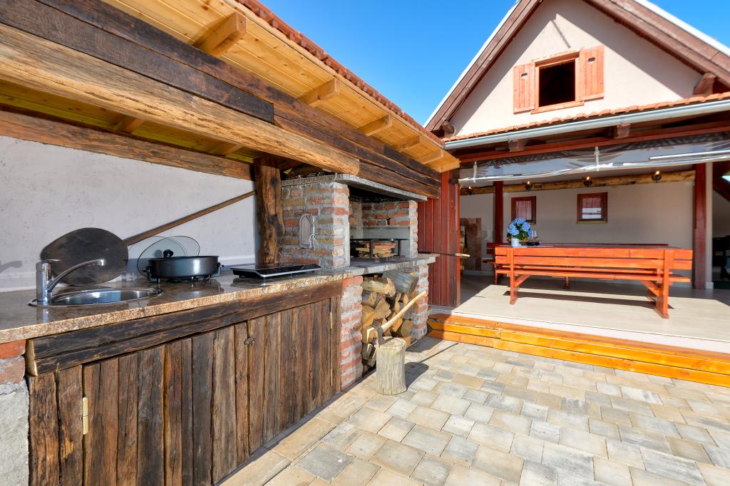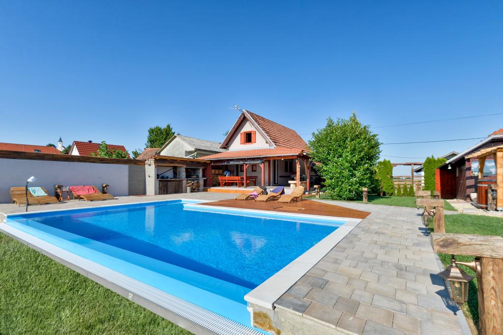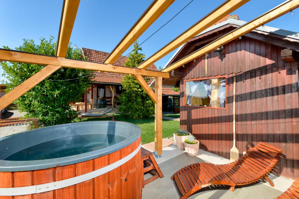 Des vacances idéales loin de la vie quotidienne trépidante.La maison de vacances Holiday Home Dika à Kapelščak se compose de deux maisons, l'une à côté de l'autre. Nous pouvons accueillir jusqu'à huit personnes dans quatre chambres, avec trois grands lits doubles et deux lits séparés. Deux cuisines à l'intérieur et une à l'extérieur permettent de préparer des plats raffinés. Nous offrons un grand barbecue extérieur sur une terrasse spacieuse prête pour les rencontres familiales. Le sauna complète le séjour dans la maison, et dans la cour joliment décorée se trouve une piscine jacuzzi avec eau chauffée. Il y a aussi une piscine à débordement avec une vue magnifique sur la nature. En été, vous pouvez vous régaler près du foyer extérieur et en hiver, vous pouvez vous réchauffer en brûlant dans le poêle à potasse ou simplement tourner le thermostat et allumer le chauffage. Au sous-sol de la maison, vous trouverez des bouteilles de vins soigneusement sélectionnés par les vignerons de Međimurje, avec la possibilité de déguster une goutte divine de notre climat. A côté de la maison il y a une cour, un verger et une forêt. Une agréable promenade à travers la belle nature du haut Međimurje vous mènera au LifeClass Terme Sveti Martin en 25 minutes.