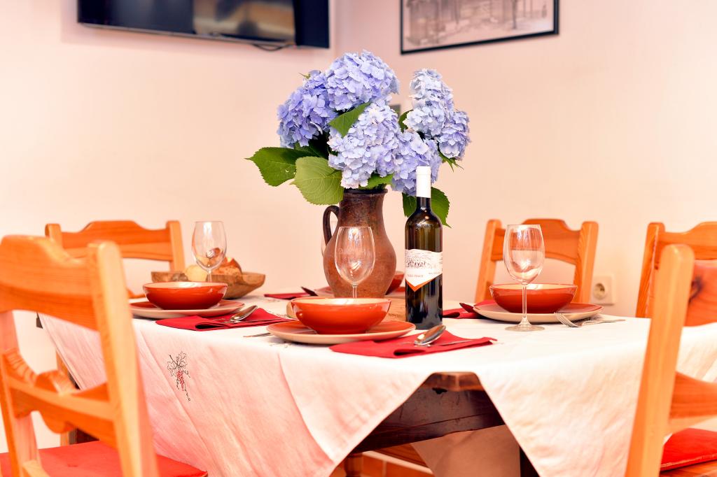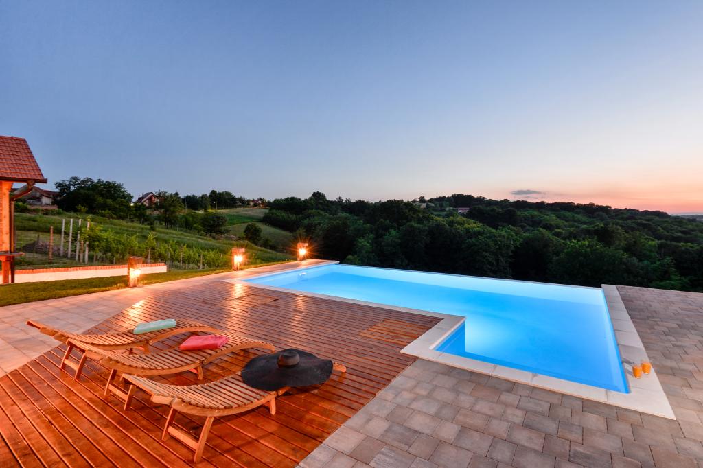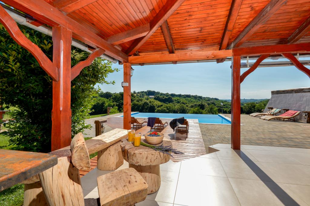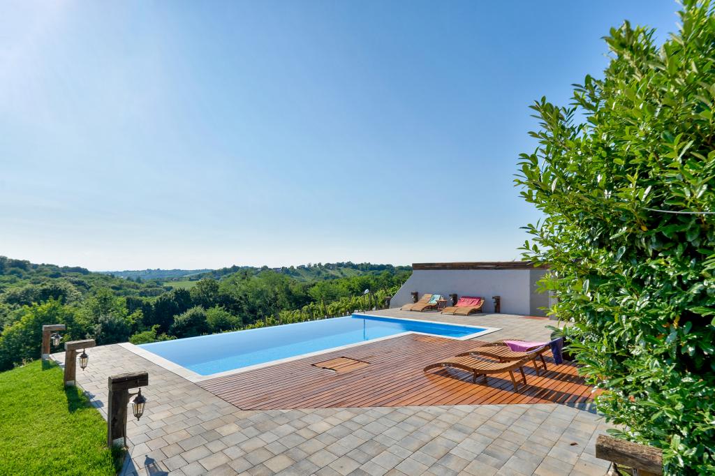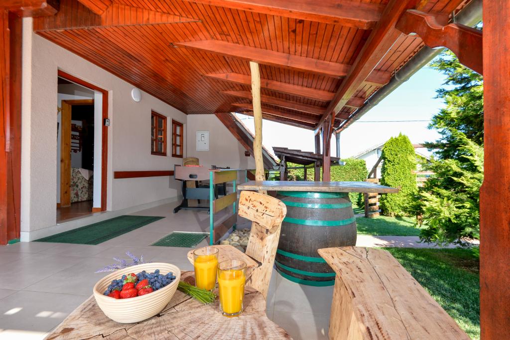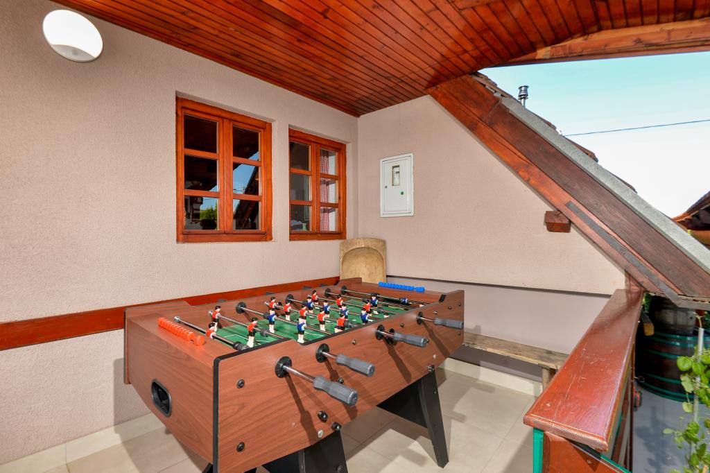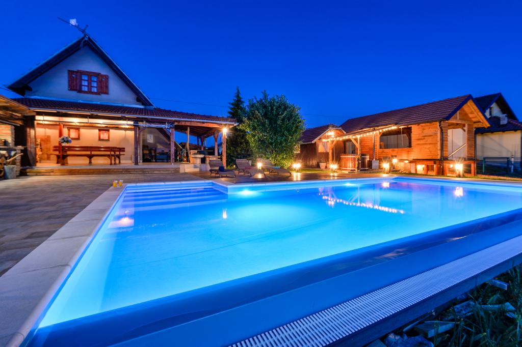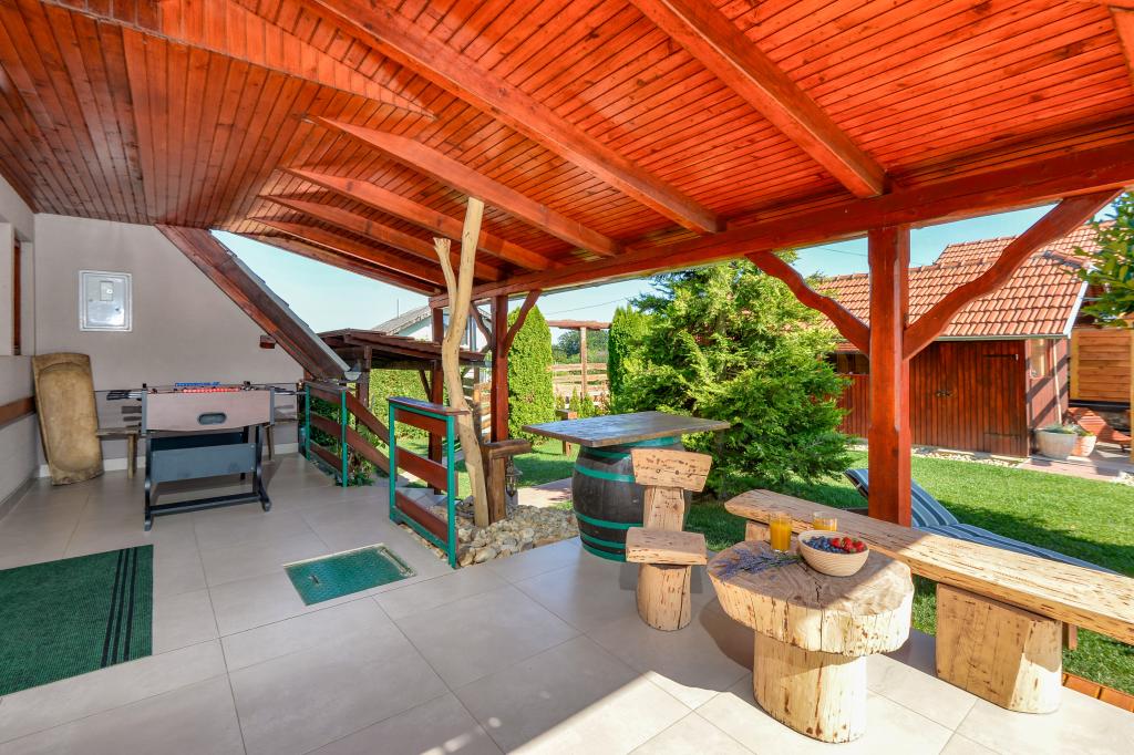 Des vacances idéales loin de la vie quotidienne trépidante.La maison de vacances Holiday Home Dika à Kapelščak se compose de deux maisons, l'une à côté de l'autre. Nous pouvons accueillir jusqu'à huit personnes dans quatre chambres, avec trois grands lits doubles et deux lits séparés. Deux cuisines à l'intérieur et une à l'extérieur permettent de préparer des plats raffinés. Nous offrons un grand barbecue extérieur sur une terrasse spacieuse prête pour les rencontres familiales. Le sauna complète le séjour dans la maison, et dans la cour joliment décorée se trouve une piscine jacuzzi avec eau chauffée. Il y a aussi une piscine à débordement avec une vue magnifique sur la nature. En été, vous pouvez vous régaler près du foyer extérieur et en hiver, vous pouvez vous réchauffer en brûlant dans le poêle à potasse ou simplement tourner le thermostat et allumer le chauffage. Au sous-sol de la maison, vous trouverez des bouteilles de vins soigneusement sélectionnés par les vignerons de Međimurje, avec la possibilité de déguster une goutte divine de notre climat. A côté de la maison il y a une cour, un verger et une forêt. Une agréable promenade à travers la belle nature du haut Međimurje vous mènera au LifeClass Terme Sveti Martin en 25 minutes.