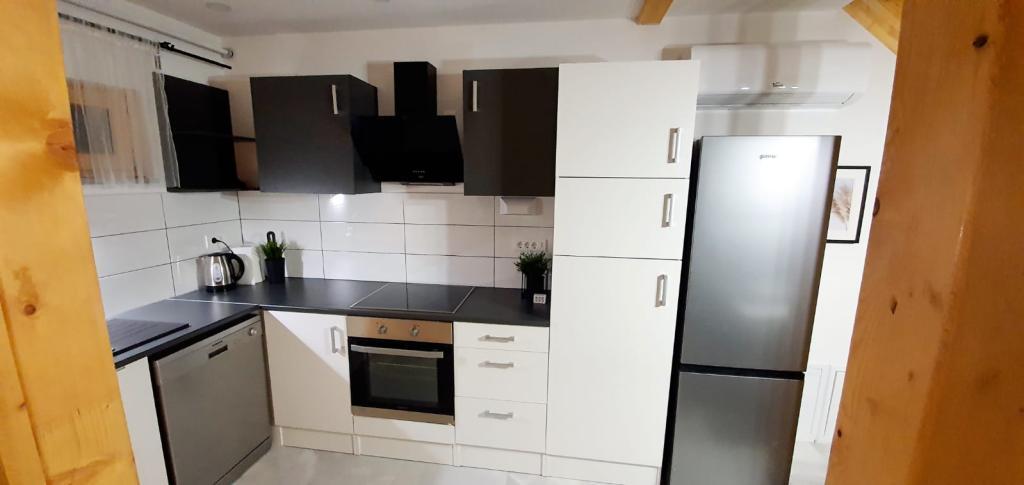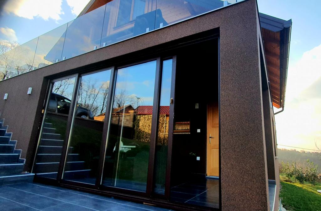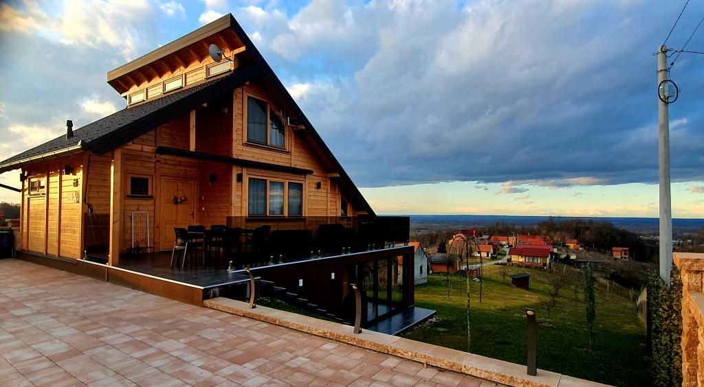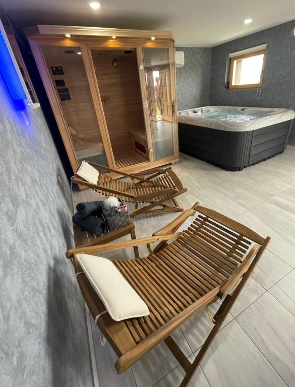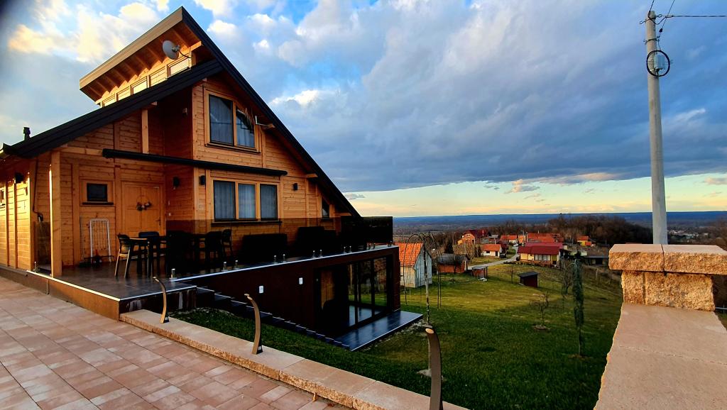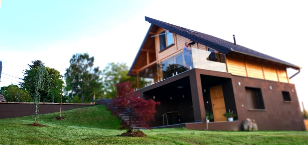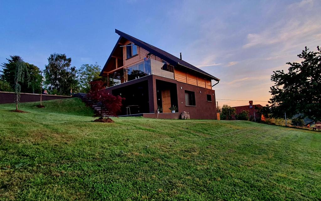Maison de vacances entièrement équipée de façon moderne avec salle de bien-être (sauna et jacuzzi) En pleine nature, belle vue. La maison dispose de 3 chambres. La grande chambre a un lit double 180×200, tandis que les deux autres chambres ont des lits doubles. 130x 200. Chaque chambre a sa propre télévision. La maison est équipée de 3 climatiseurs, de 4 téléviseurs, d'un poêle à granulés, d'un chauffage au sol et d'une cuisine entièrement équipée (four, micro-onde, cuisinière, réfrigérateur avec congélateur, lave-vaisselle). La maison dispose d'un grand parking max. 4 voitures. En plus de la grande cour, la maison dispose également d'une belle grande terrasse et d'un jardin d'hiver avec vue.