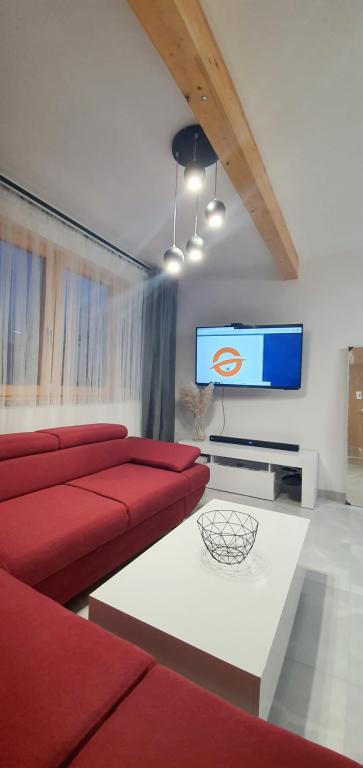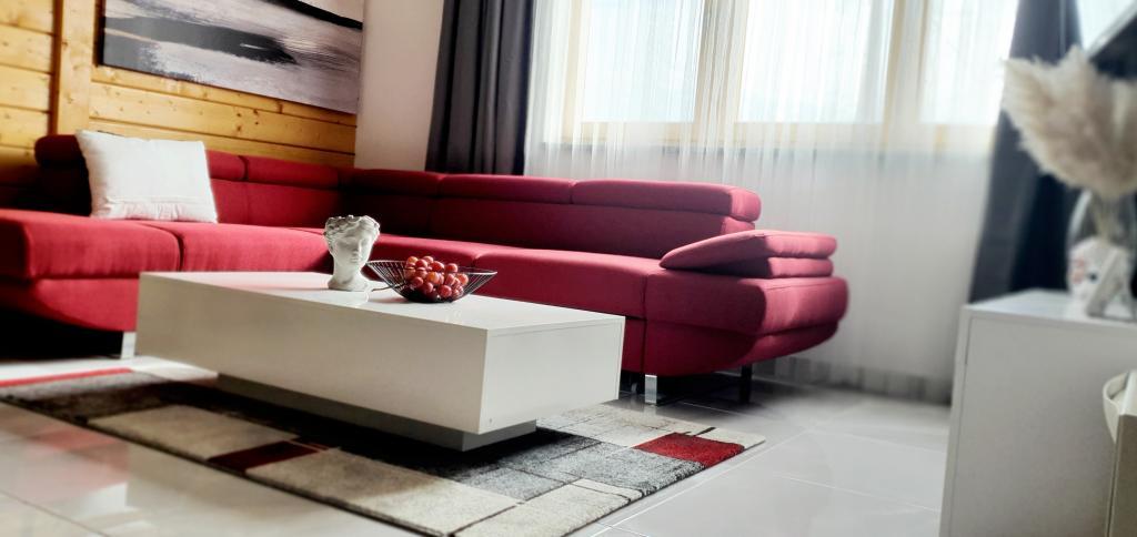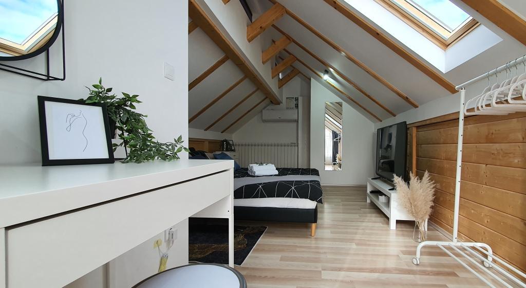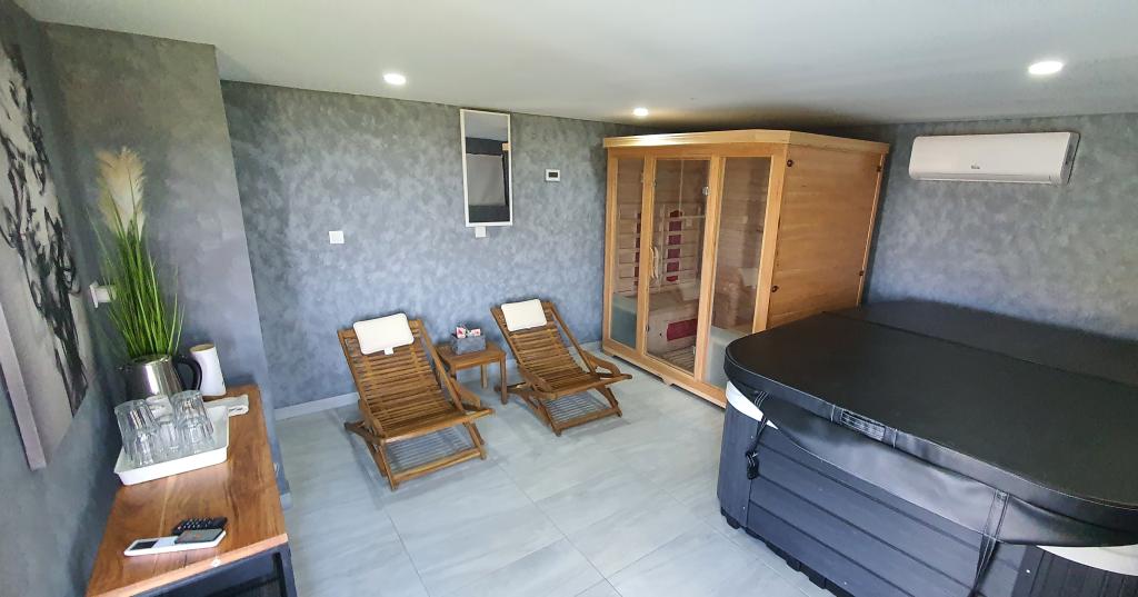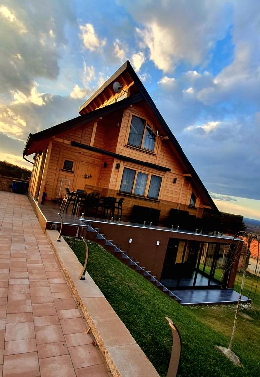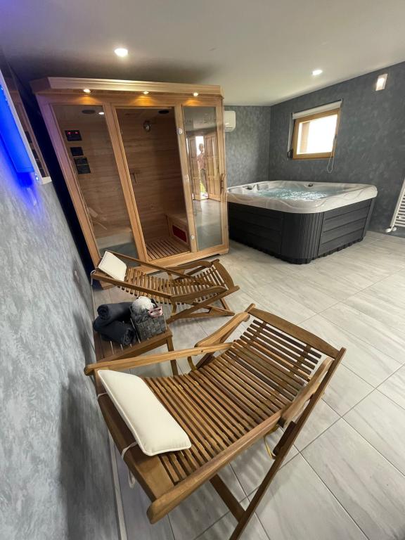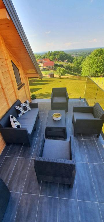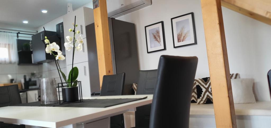 Maison de vacances entièrement équipée de façon moderne avec salle de bien-être (sauna et jacuzzi) En pleine nature, belle vue. La maison dispose de 3 chambres. La grande chambre a un lit double 180×200, tandis que les deux autres chambres ont des lits doubles. 130x 200. Chaque chambre a sa propre télévision. La maison est équipée de 3 climatiseurs, de 4 téléviseurs, d'un poêle à granulés, d'un chauffage au sol et d'une cuisine entièrement équipée (four, micro-onde, cuisinière, réfrigérateur avec congélateur, lave-vaisselle). La maison dispose d'un grand parking max. 4 voitures. En plus de la grande cour, la maison dispose également d'une belle grande terrasse et d'un jardin d'hiver avec vue.