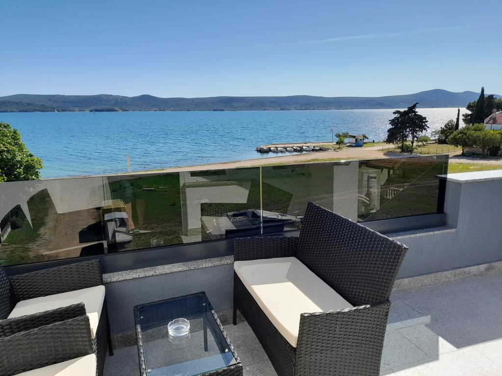Je loue deux appartements climatisés à la décoration moderne et entièrement équipés avec une belle vue sur la mer, qui se trouve à seulement 60 m. 1 (4****) est situé au premier étage, dispose de deux chambres, d'une salle de bain avec lave-linge, d'une cuisine équipée de tous les appareils électroménagers (lave-vaisselle, micro-ondes, grille-pain...), d'un séjour avec placard un lit et une terrasse avec une belle vue sur l'île de Pašman. L'application 2 est située dans les combles, dispose de deux chambres, d'une cuisine avec salon, d'une salle de bain et d'une terrasse avec vue sur la mer. Il est équipé exactement de la même manière que l'App 1. Le stationnement des voitures est prévu dans la cour ou devant la cour.