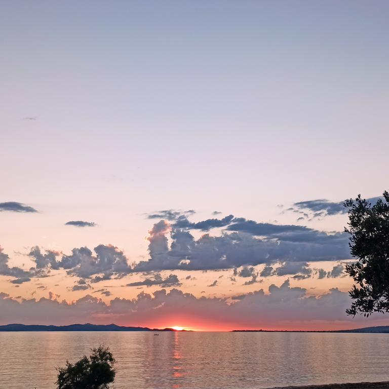 L'appartement est situé dans une maison familiale à côté de la mer. Vous disposez de tout ce dont vous avez besoin pour des vacances en famille ainsi que d'une belle vue depuis la terrasse donnant sur l'un des plus beaux couchers de soleil du monde. Deux chambres plus un canapé avec un lit queen-size qui peut, avec l'aide d'un surmatelas, devenir un lit confortable pour un adulte. La salle de bain dispose d'une douche et d'un autre WC supplémentaire, séparé. Devant la maison, vous avez une belle plage de galets avec des arbres à côté de laquelle se trouvent des chaises longues pour nos hôtes. Nous avons un camping familial à l'intérieur de la maison avec des toilettes et des douches attenantes que vous pouvez utiliser pendant que vous êtes sur la plage. A 5 minutes à pied de la maison, le long du front de mer, se trouvent une pizzeria et un bar de plage où vous pourrez prendre un café ou un cocktail. L'établissement est situé dans une zone où se trouvent principalement des campings familiaux privés, il est donc assez calme et pas du tout surpeuplé. Nous ne sommes pas nouveaux dans ce secteur, donc si vous êtes intéressé par des avis sur notre établissement, vous pouvez les trouver sur « booking ». Vous avez également la possibilité de mettre à l'eau un bateau jusqu'à 6 m de long et de l'amarrer à une bouée.