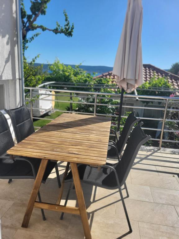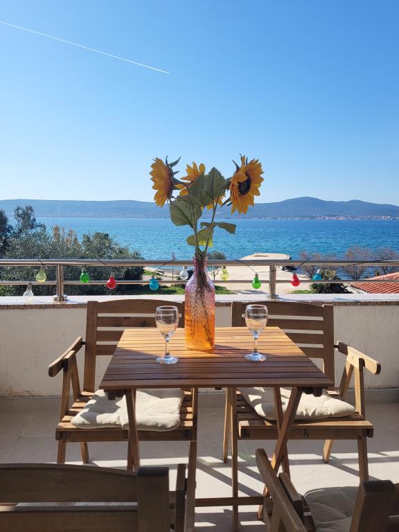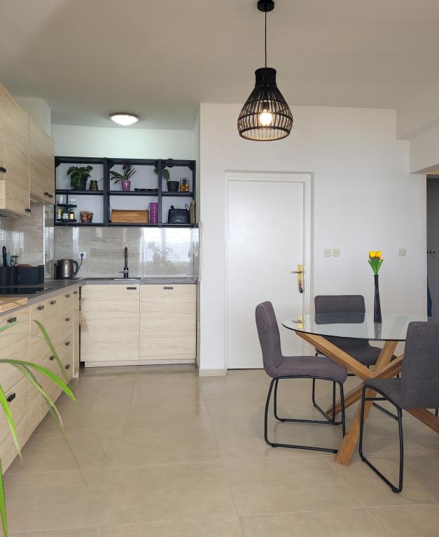 Nous sommes tombés amoureux de l'endroit! Chambres très propres et confortables, la cuisine a tout ce dont vous avez besoin. La climatisation fonctionnait très bien les jours chauds. Le balcon a une belle vue sur la mer, la plage est à quelques pas. Il y a la paix et la tranquillité tout autour, parfait pour se détendre. Il y a une boulangerie et un restaurant à proximité. Propriétaires très sympathiques et serviables, excellent contact par e-mail. Nous recommandons vivement cet endroit et reviendrons certainement!