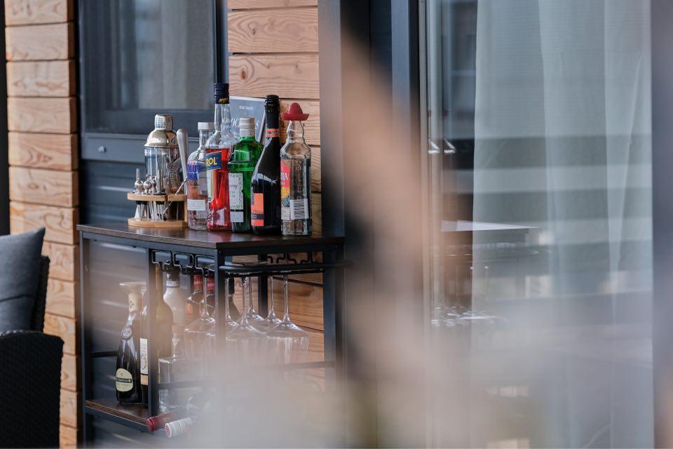 Douche extérieure, 2 chaises longues avec une petite table, parasol et support. Mini bar à cocktails. SUP, IPTV/Netflix 1 x Place de parking gratuite.