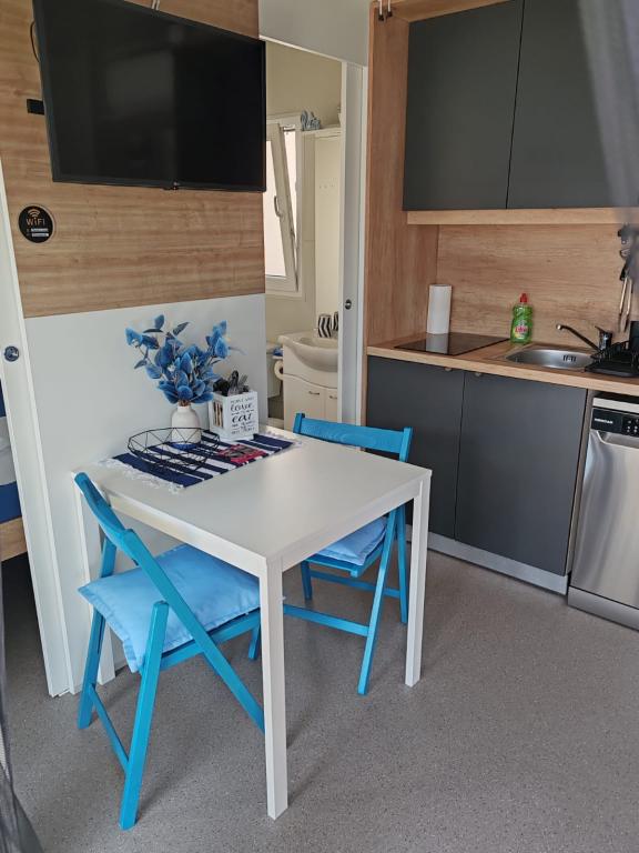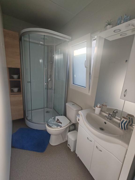 Le mobil-home EMMI bénéficie d'un emplacement idéal, à 20 mètres de la plage de sable et de galets, idéale pour les enfants, même les plus téméraires. Les propriétaires sont sympathiques et ont mis à disposition de leurs hôtes tout le nécessaire pour des vacances réussies (chaises longues, parasol, supérette, barbecue à gaz et mobilier confortable sur la terrasse). Si vous souhaitez passer des vacances en famille sans bruit ni stress, réservez dès maintenant ; vous ne vous tromperez pas. Ma famille reviendra et j'espère y rester plus de 7 jours l'année prochaine.
