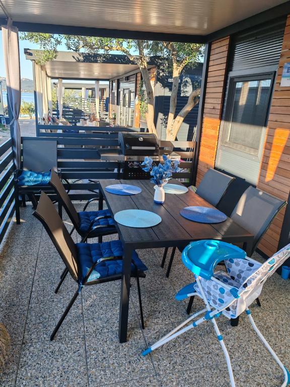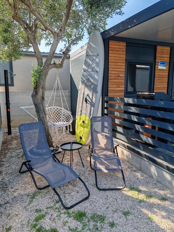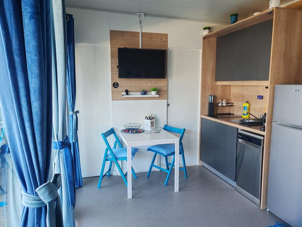 Le nouveau mobil-home entièrement équipé est situé dans le Camp Tamaris récemment rénové. La maison est entièrement équipée de toutes les commodités pour des vacances agréables. L'avantage de la maison est la proximité de la belle plage, à seulement 15 mètres. Description de la maison : -2 chambres avec lits doubles (140x200 et 160x200) et literie -cuisine avec séjour (table extensible, canapé convertible) -salle de bain (serviettes et sèche-cheveux) -grande terrasse spacieuse (table + 6 chaises, meubles et chaises pour s'asseoir, barbecue à gaz avec brûleur supplémentaire pour cuisiner)