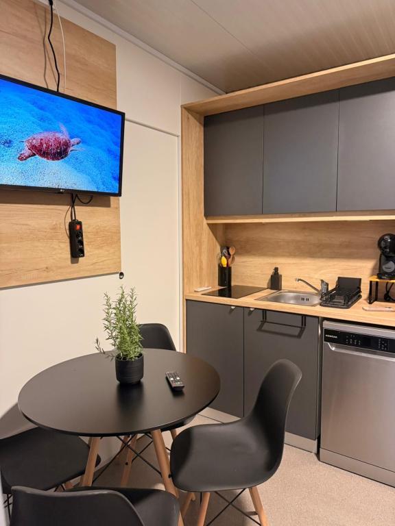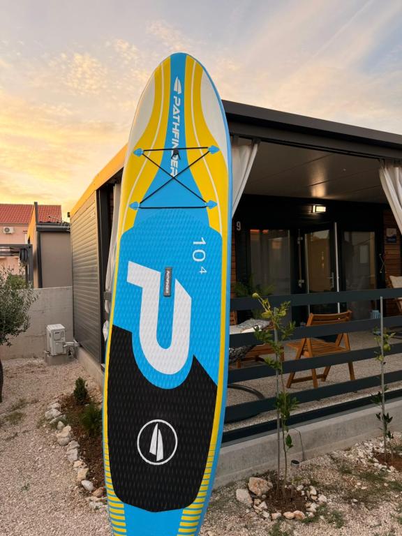 Un beau mobil-home en bord de mer, à quelques pas d'une belle plage de galets et d'une côte tranquille, à proximité de restaurants et de cafés, agréable pour se reposer et sortir entre amis, adapté aux enfants, car ils peuvent marcher pour nager depuis la maison elle-même.