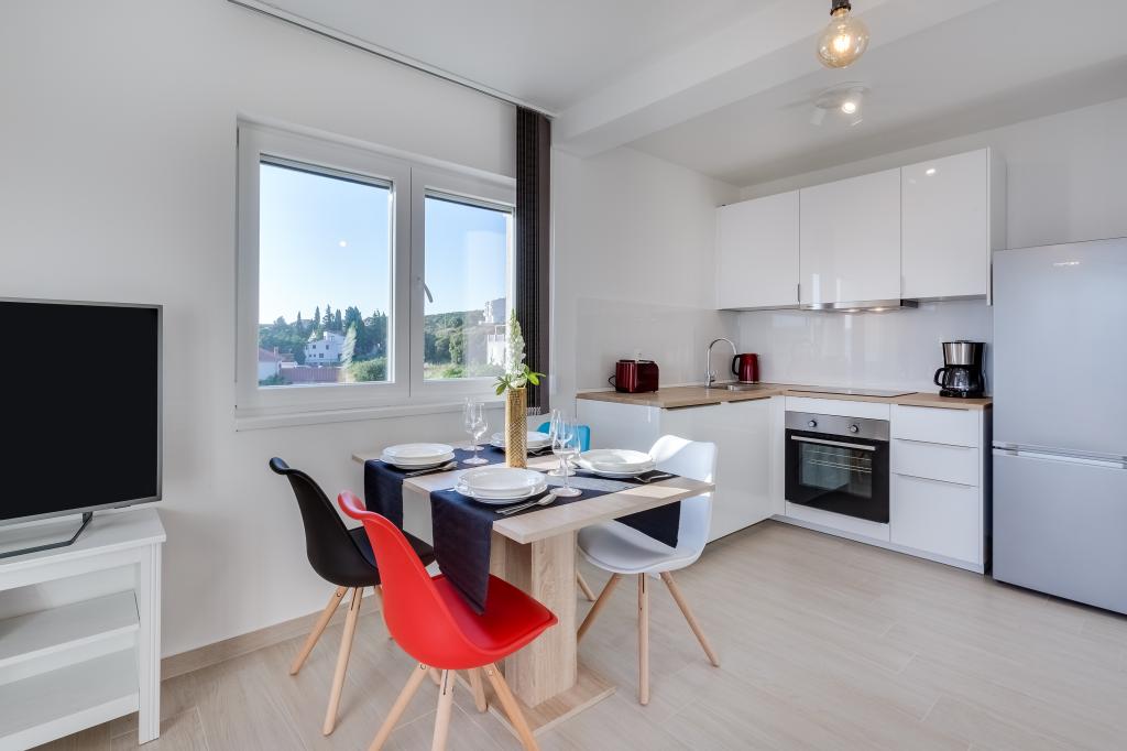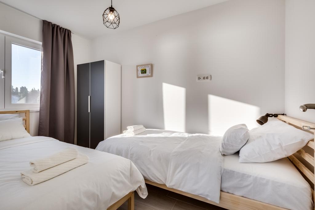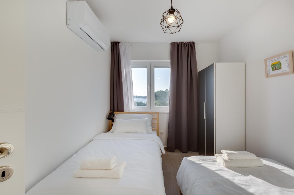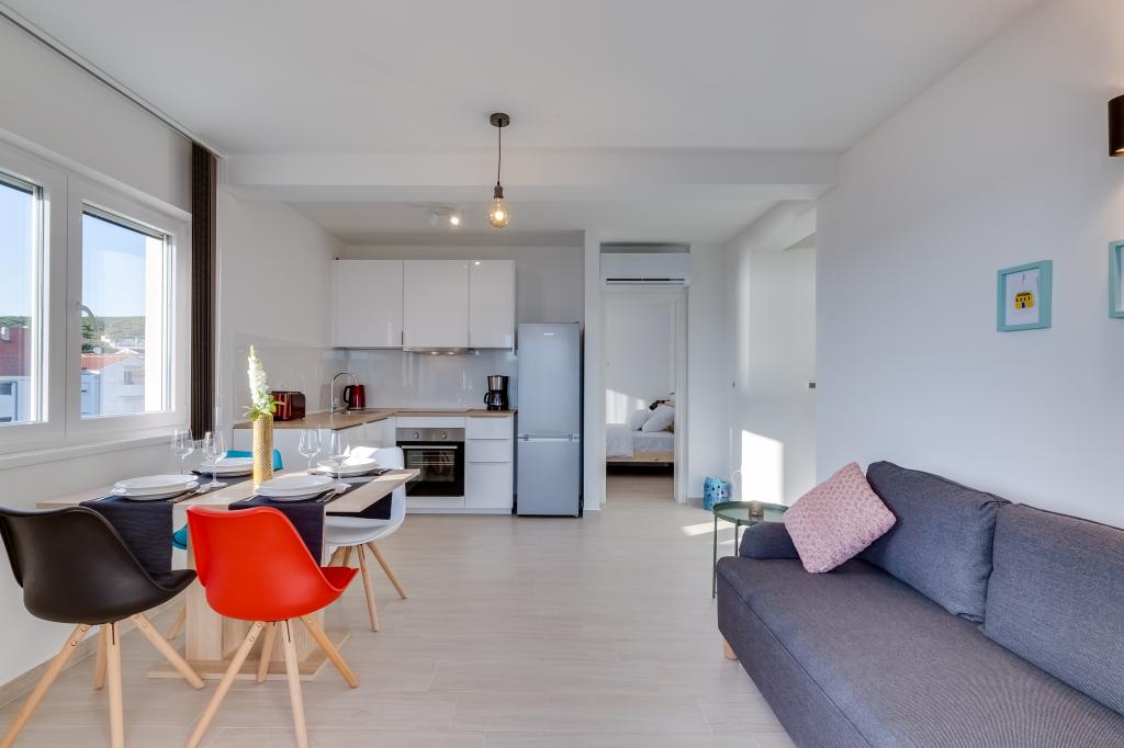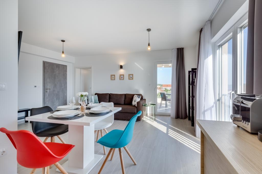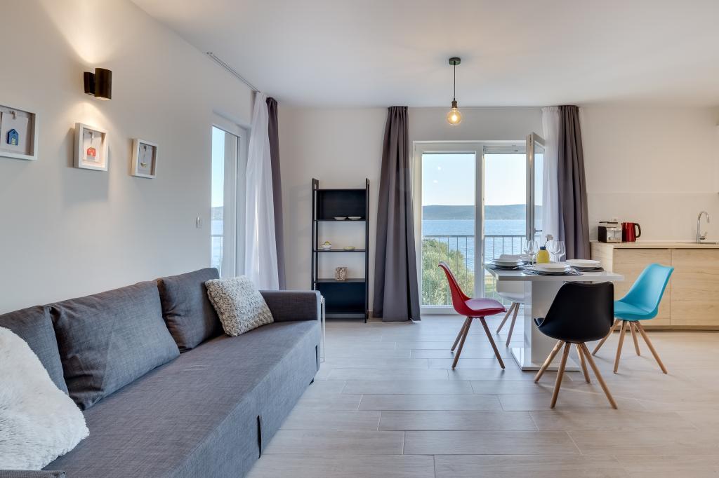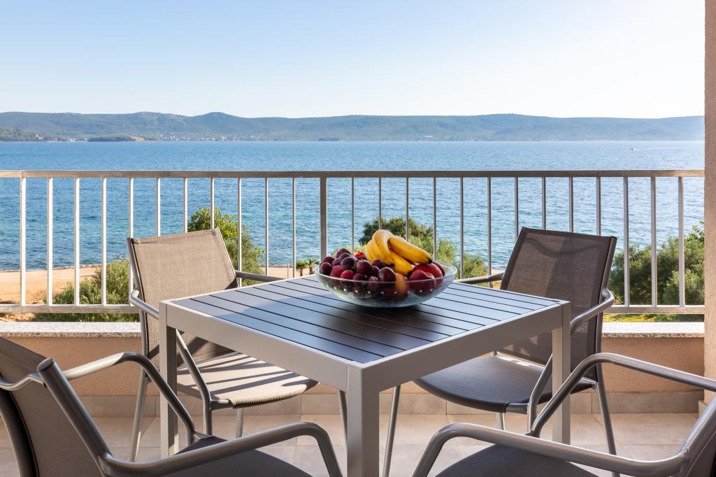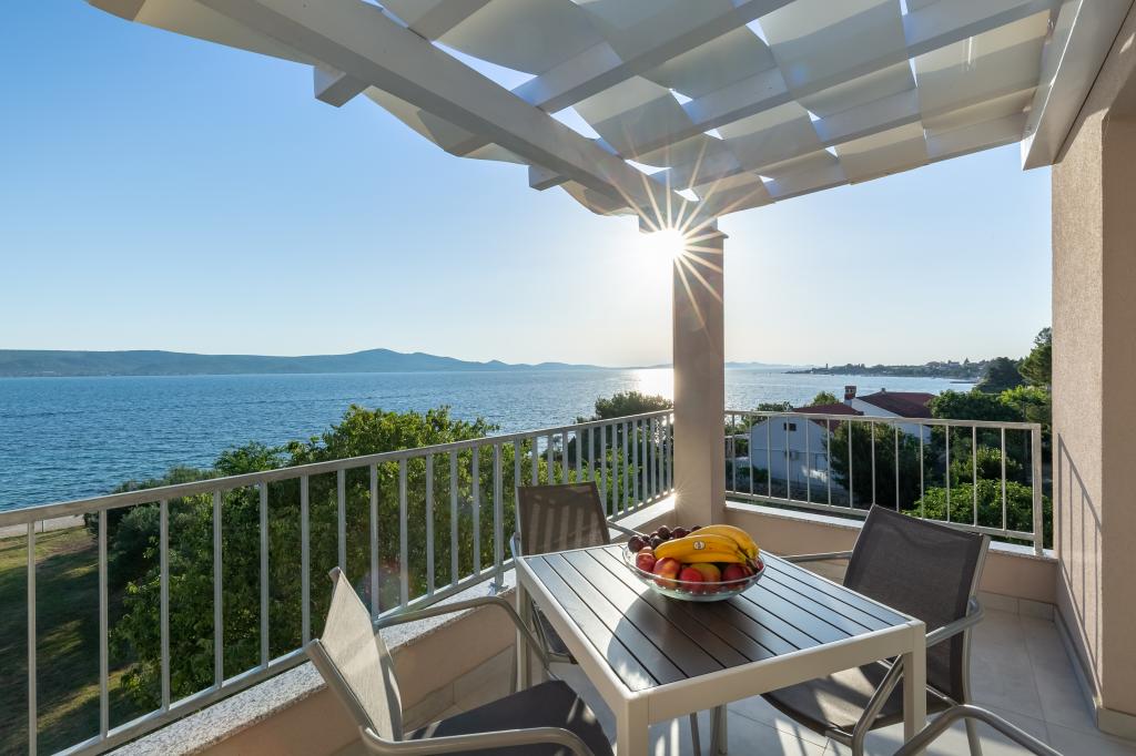 Nouveaux appartements dans un excellent emplacement directement au bord de la mer. Seule une cour plantée d'oliviers vous sépare de la mer. Tous les appartements disposent d'une terrasse avec une belle vue sur la mer. Ils disposent d'une cuisine entièrement équipée (comprenant une plaque à induction, un four, un lave-vaisselle, une machine à café), chaque chambre dispose d'une moustiquaire et de la climatisation. Grande télévision de 50 pouces. Les salles de bains disposent d'une douche à l'italienne. Profitez de baignades dans la mer puis reposez-vous sur les transats à l'ombre des oliviers. La nuit, promenez-vous le long de la côte ou visitez les villes voisines (Zadar, Biograd, Šibenik...).