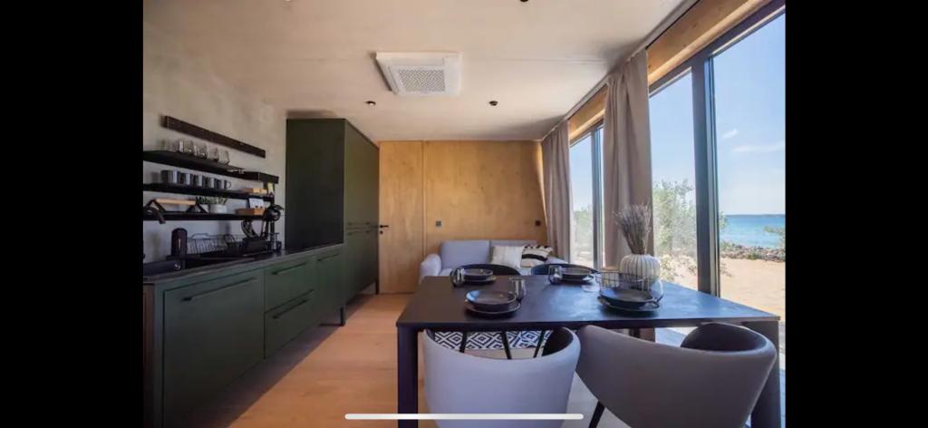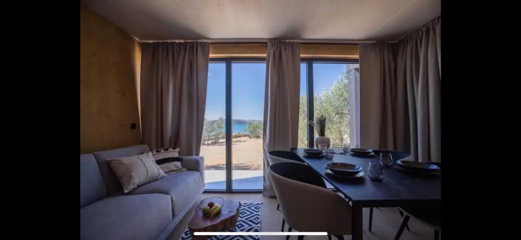 Le mobil-home romantique est situé à quelques pas de la mer, entouré d'oliviers et de galets blancs, avec une vue captivante sur la mer bleue sans fin. Idéal pour les couples ou les familles, il offre un mélange de confort moderne et de charme dalmate. Profitez de deux chambres, d'une cuisine entièrement équipée (avec lave-vaisselle et congélateur), d'un coin repas spacieux et d'une terrasse avec barbecue. Les matinées commencent avec le soleil et le bruit des vagues, et les soirées se terminent sous le ciel étoilé, dans le calme et l'intimité la plus totale. Une connexion Wi-Fi gratuite et un parking privé sont à la disposition des clients. Bien qu'entouré de quelques maisons, vous aurez ici l'impression d'être seul au monde, entre le ciel et la mer.