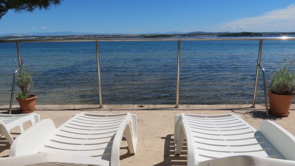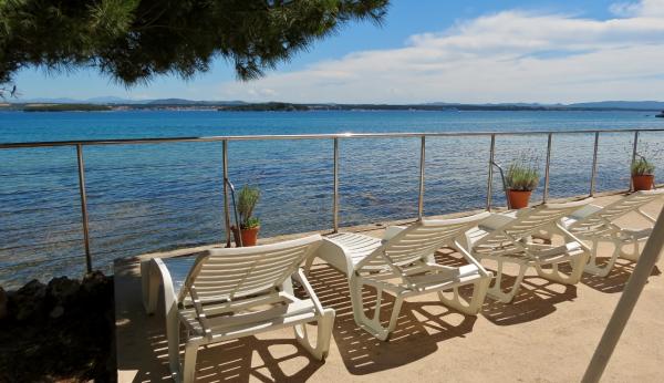 Brist appartements sont nouveaux appartements décorés et situés dans le village de Tkon, sur l'île de Pasman. Nous louons deux nouveaux appartements avec belle vue sur la mer et les montagnes depuis la grande terrasse, à seulement 2 mètres de la mer. Venez profiter d'une longue tradition de 33 ans, passer vos meilleures vacances! L'espace Appartement bleu et vert sont des appartements de 40 squere mètres, avec grande terrasse et vue sur la brethtaking. Les appartements sont faits de chambre, wc, cuisine et grand salon. Capacité est 4 1 personne supplémentaire. Salle de bains est équipée avec cabine de douche et dans la cuisine, il y a un réfrigérateur et d'un endroit pour cuisiner et laver la vaisselle. Il y a aussi la télévision par câble, connexion internet wi-fi et air conditionné. Le Quartier Centre de Tkon se trouve à 700 mètres de l'appartement où vous pouvez trouver toutes les choses necesary: ​​banque, bureau de poste, les marchés ...