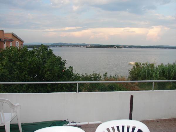 Maison située dans un quartier calme de Tkon, sur l'île de Pašman. L'accès à la ville se fait par ferry (départs toutes les heures si nécessaire) et plus fréquemment depuis Biograd. Les appartements, situés en première ligne face à la mer (à 10 mètres), offrent une superficie de 130 m². Le centre-ville est à 10 minutes à pied. Un grand parking est disponible devant la maison. Les appartements sont entièrement équipés pour préparer repas et boissons, et comprennent le Wi-Fi, la climatisation, une télévision, une douche extérieure et un barbecue. Ils se composent de trois chambres, d'une chambre d'enfant, d'une salle de bain avec WC, d'un WC séparé, d'une grande terrasse avec vue sur la mer, d'une cuisine et d'un vaste séjour. La terrasse couverte, idéale pour bronzer et se détendre, est attenante à la cuisine et offre une vue imprenable sur la mer et les environs. Les appartements sont proposés à la location en exclusivité, mais la maison entière peut également être louée. Cette formule est idéale pour une famille.