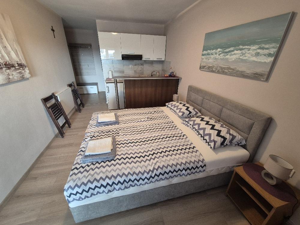 Nous louons un charmant appartement de deux chambres situé à Tribunj, un village de pêcheurs pittoresque qui s'élève le long de la côte, non loin de la pittoresque Vodice et connu pour sa course de marchandises traditionnelle. Situé au deuxième étage d'un immeuble plus petit, cet appartement offre une terrasse spacieuse avec une belle vue sur la mer et le paysage environnant, qui s'étend jusqu'à Vodice, Šibenik, Prvić et plusieurs autres îles, tandis que l'église de St. Nikole brille la nuit au loin. Les clients ont accès à la climatisation, au parking et à une télévision LCD/antenne satellite moderne pour d'agréables soirées de détente. La cuisine est entièrement équipée avec une cuisinière à gaz, un réfrigérateur avec congélateur et tous les accessoires nécessaires pour préparer et servir des plats et des boissons. La salle de bain est confortable, équipée d'une cabine de douche et de sanitaires fonctionnels. Le prix comprend la taxe de séjour, l'utilisation de la climatisation et le parking, et un acompte de 30% du prix garantit la réservation. Tribunj offre de belles plages et toutes les commodités nécessaires pour un séjour agréable - commerces, distributeurs automatiques, clinique, pharmacie,