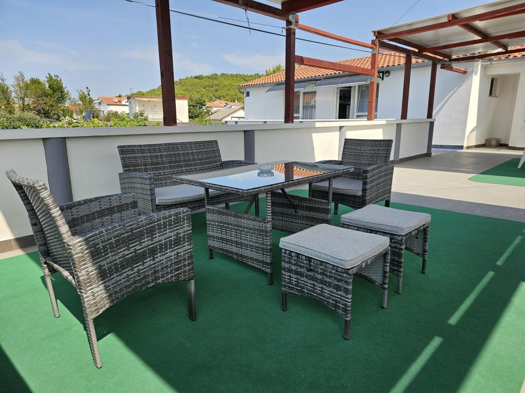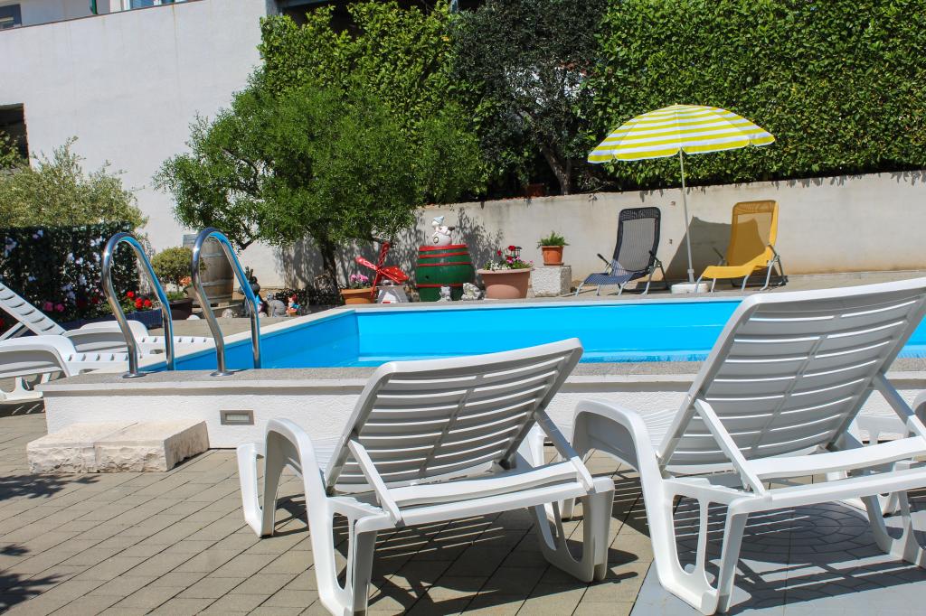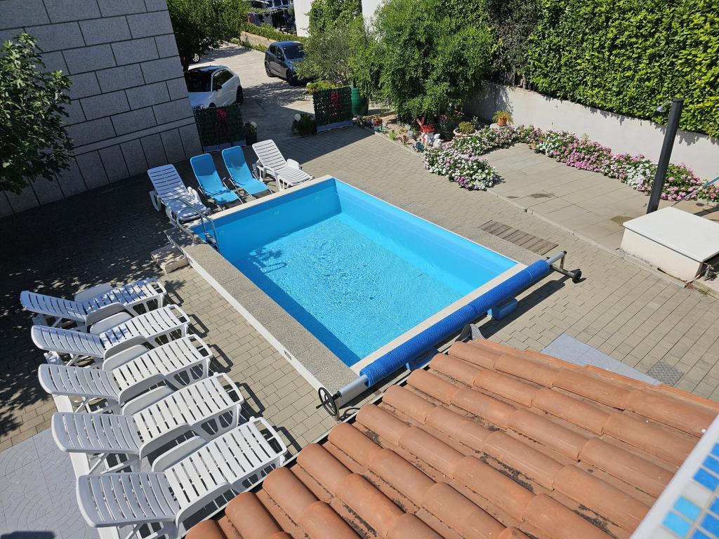Une piscine est à la disposition de tous les hôtes. APPARTEMENT A1 (climatisation) - situé au rez-de-chaussée et se compose d'une cuisine, deux salles de bains, deux chambres pour quatre personnes, salon, TV-SAT, WI-FI, un petit balcon avec terrasse et parking APPARTEMENT A2 (climatisation) - situé au premier étage et se compose d'une cuisine, salle de bains, une chambre avec un petit balcon, salon avec un canapé-lit pour deux personnes, TV-SAT, WI-FI, une grande terrasse et parking APPARTEMENT A3 - situé au premier étage et se compose d'une cuisine, salle de bains, une chambre avec un petit balcon, salon avec un canapé-lit pour deux personnes, TV-SAT, WI-FI, une grande terrasse et parking