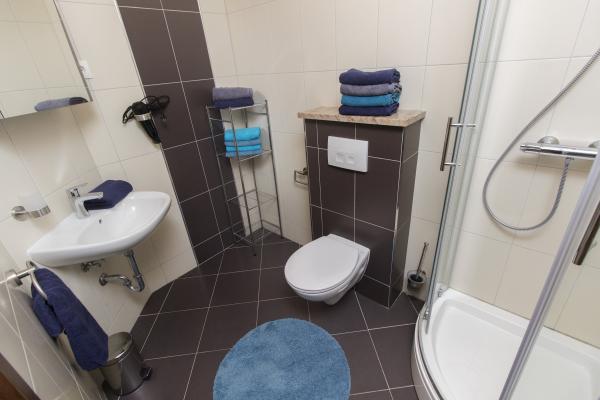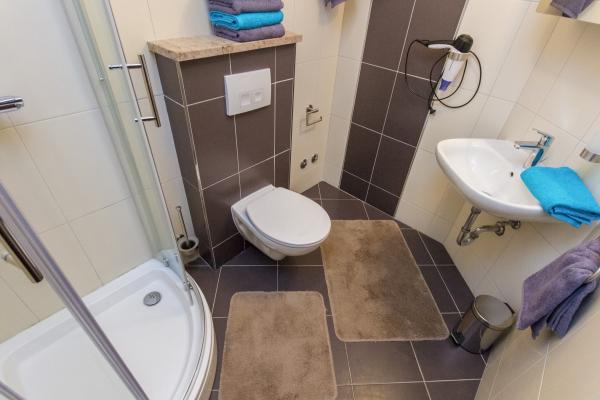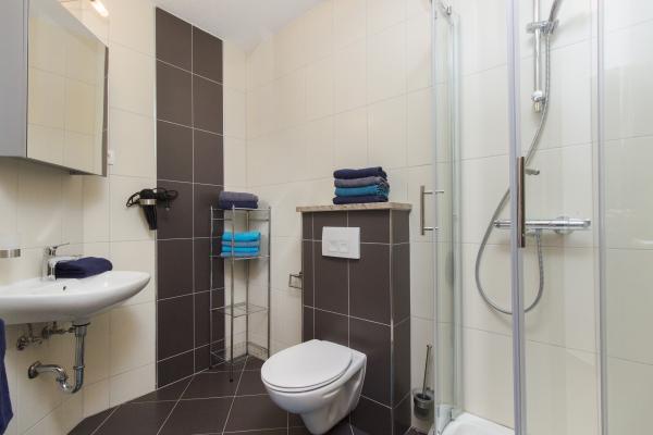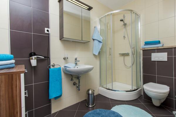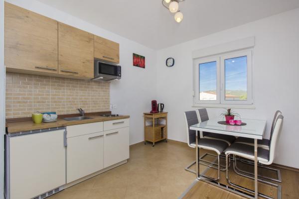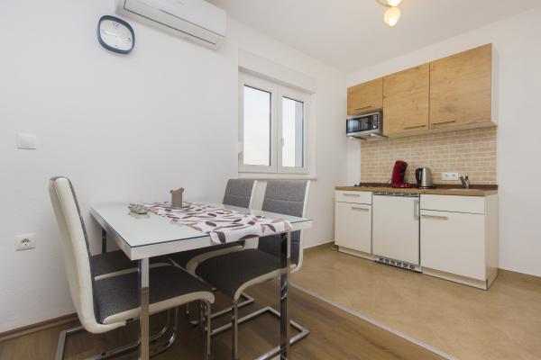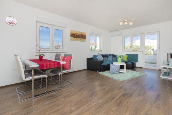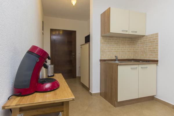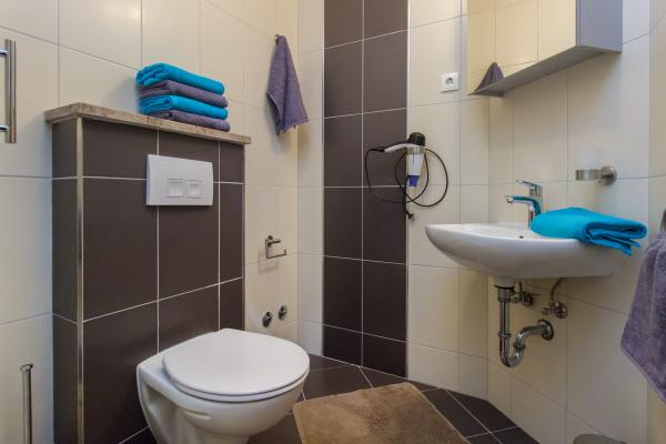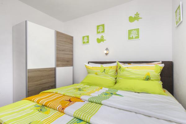 Grands appartements avec air conditionné. Un lit confortable dans la chambre, un grand canapé d'angle dépliable dans le séjour. La salle de bains est équipée de savon, d'un sèche-cheveux et de serviettes. La cuisine est équipée de casseroles, poêles, plats, d'un micro-ondes, d'un grille-pain et d'un très grand réfrigérateur (lave-vaisselle en env. 36358). Pour commencer, du liquide vaisselle, une nouvelle éponge et des chiffons. Il y a aussi un fer et une planche à repasser. Très propre. Appartements au rez-de-chaussée avec terrasse, table et 6 chaises, transats. Ombre le matin, soleil dans les fenêtres orientées sud. Un lave-linge est disponible sur demande. Parking pratique sous les arbres devant le bâtiment. Grill-cheminée à disposition. Propriétaire très gentil et serviable. Je recommande!
