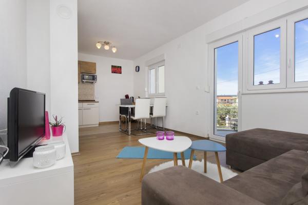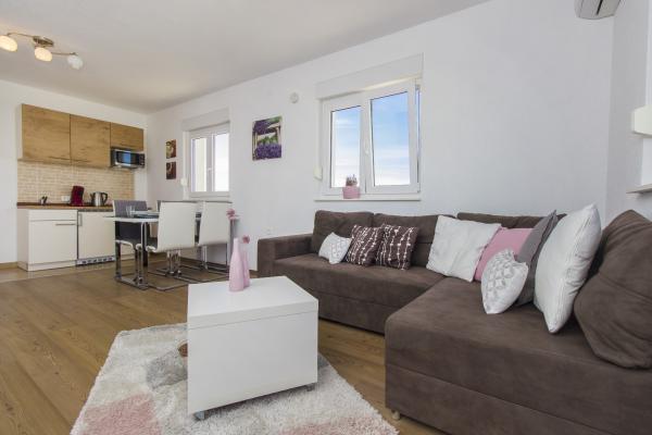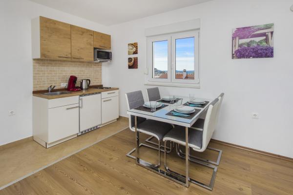 L'appartement correspond à la description, propre et agréable. Nous avions une chambre avec vue sur la mer et la vieille ville. La cuisine est bien équipée (micro-ondes, lave-vaisselle, bouilloire, grille-pain). La salle de bains comprend des serviettes, un sèche-cheveux et du savon. Fer et planche à repasser disponibles. Stationnement gratuit sur place. Le contact avec le propriétaire a été très bon et rapide grâce à WhatsApp. À environ 8 minutes à pied de la plage la plus proche et des deux autres environ 20 minutes à pied. Magasin et boulangerie à proximité. je recommande