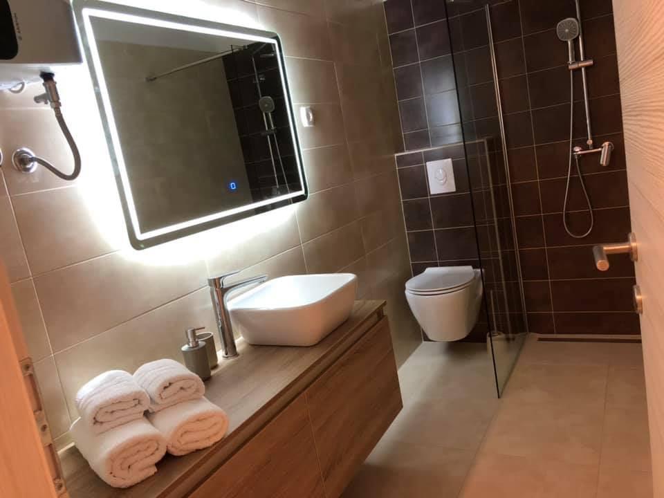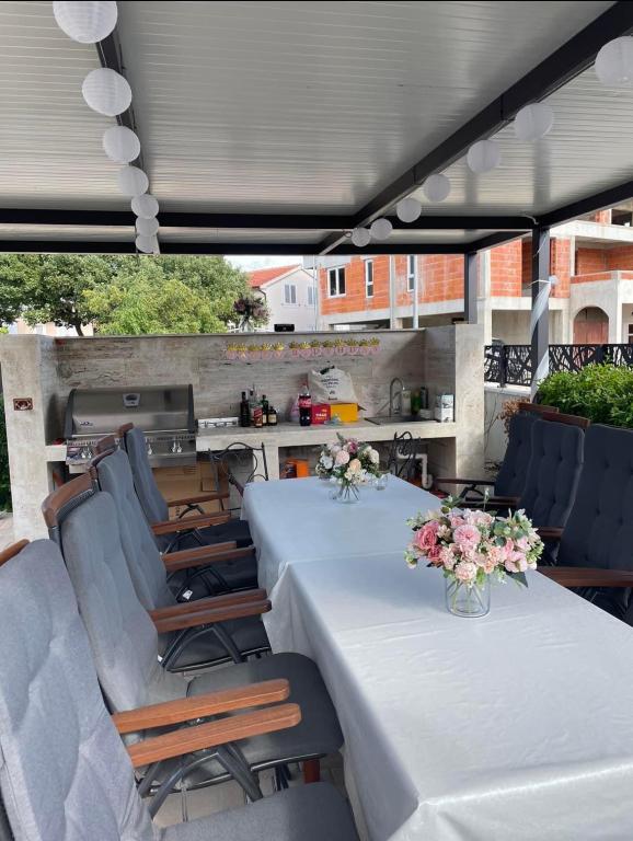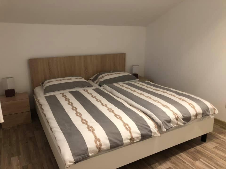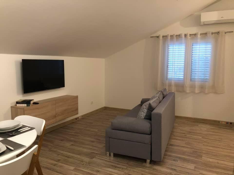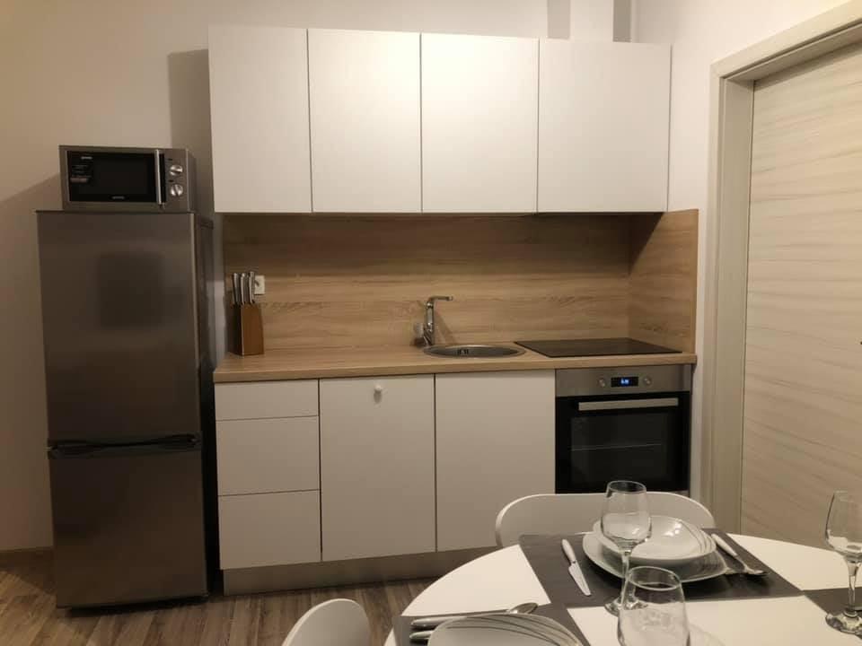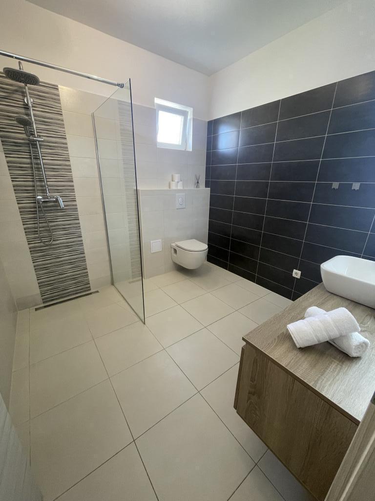 Appartements modernes et entièrement équipés, situés dans un quartier calme, à seulement 300 m de la plage et de ses nombreux commerces et services. Situés au deuxième étage d'une maison familiale, ces appartements donnent sur une cour clôturée avec terrasse couverte, cuisine d'été et barbecue. Un parking privé se trouve devant la maison. Un arrêt de bus est à 50 m et le premier magasin à 200 m. Le centre-ville est à 800 m, accessible par la route ou par la promenade du bord de mer. Nous aimons les animaux, mais les animaux de compagnie ne sont pas admis.